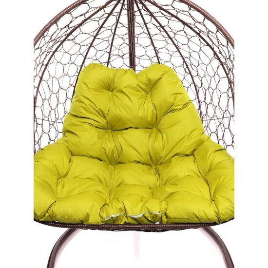 Подвесное кресло M-group для двоих с ротангом коричневое зелёная подушка