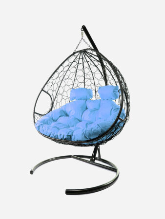 Подвесное кресло для двоих с ротангом чёрное, синяя
