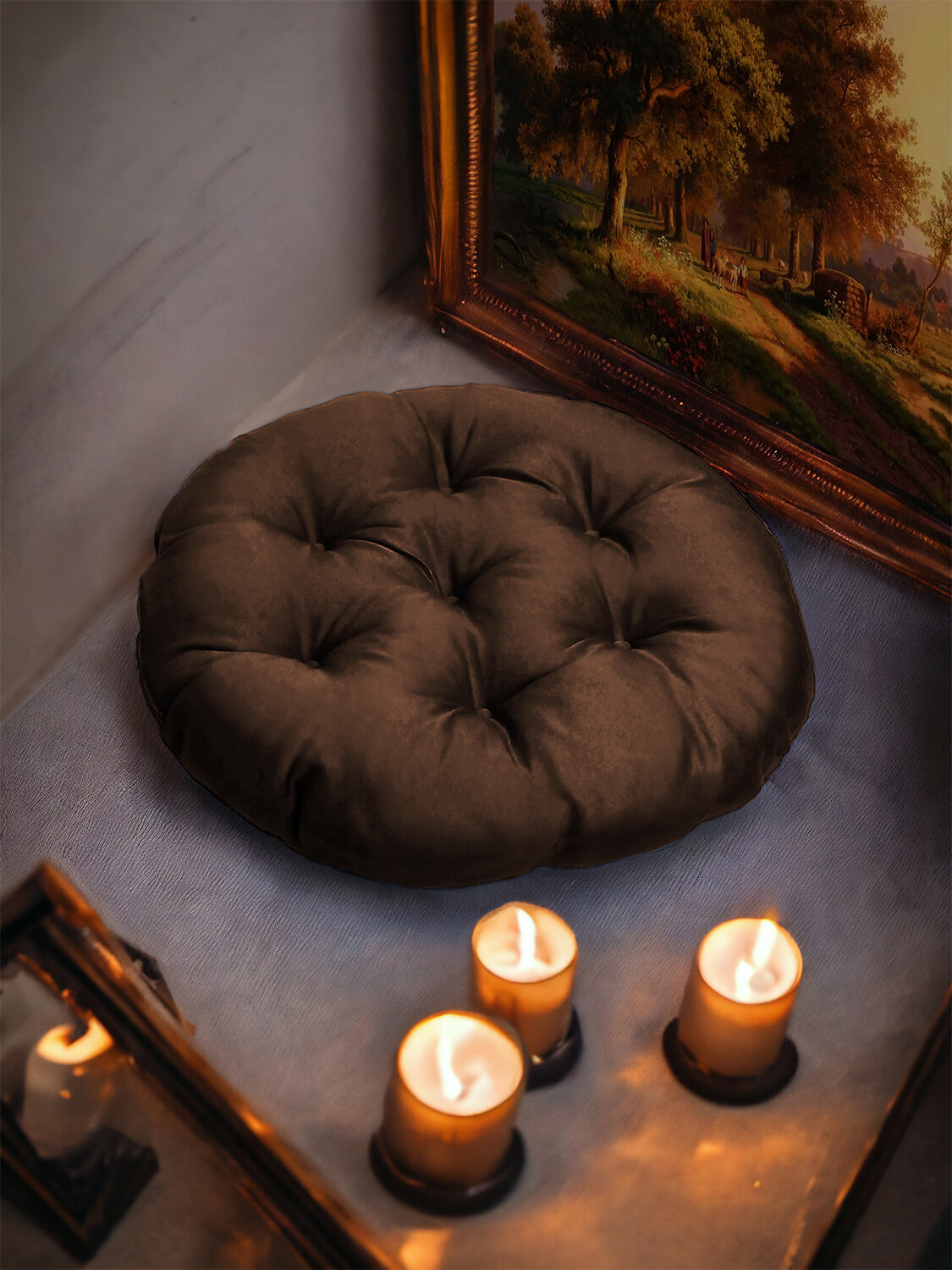Купить Подушка - сидушка на кресло или качели круглая "Орион" 60 см, коричневая