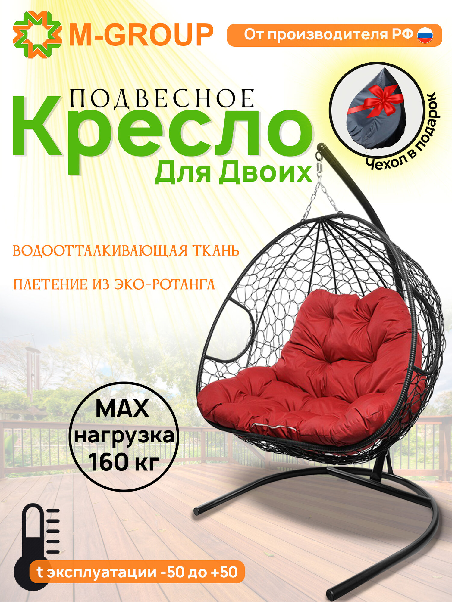 Подвесное кресло с ротангом "Для двоих" черное с красной подушкой M-GROUP