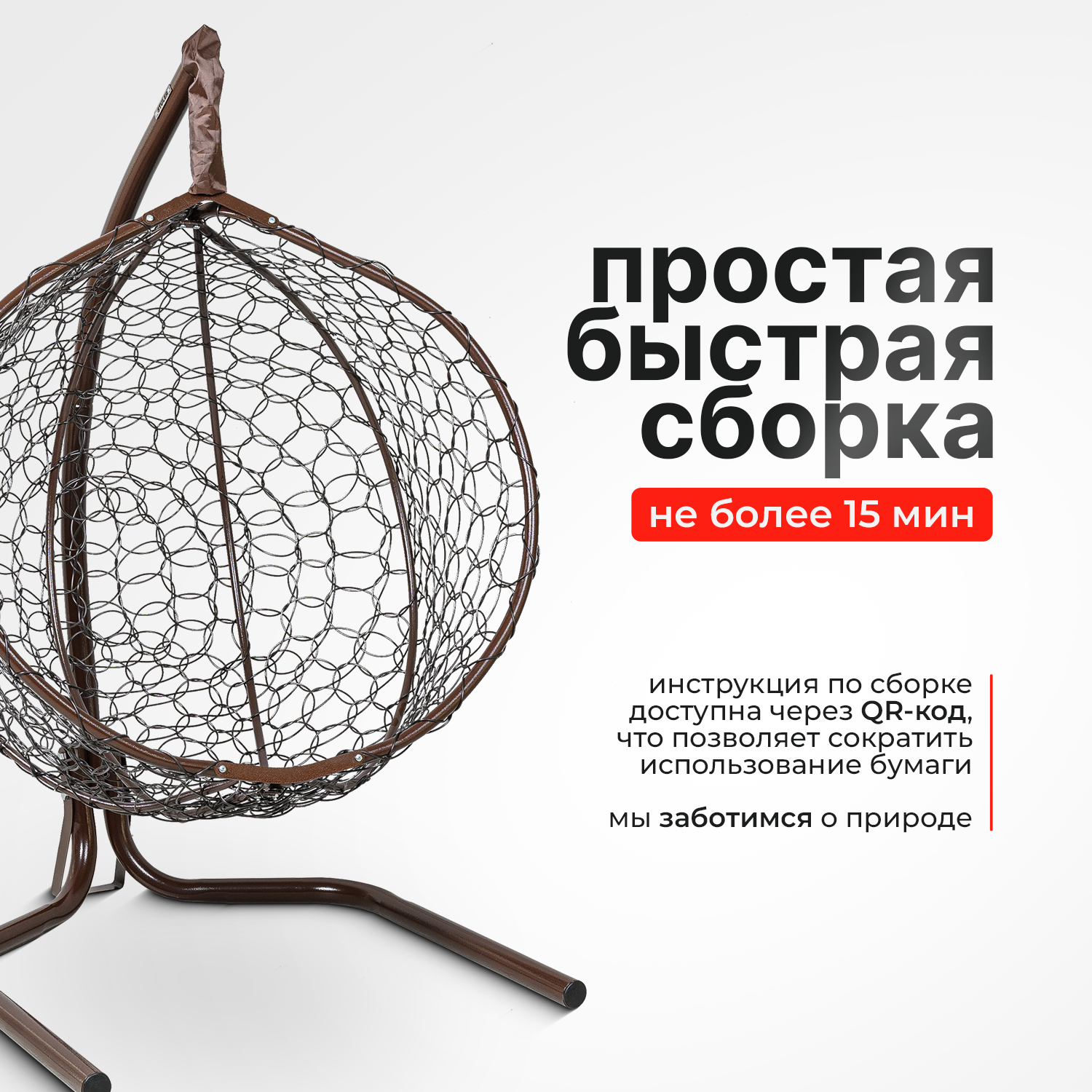 Подвесное кресло-кокон с Коричневой подушкой HomeKokon, усиленная стойка до 200кг, 175х105х64
