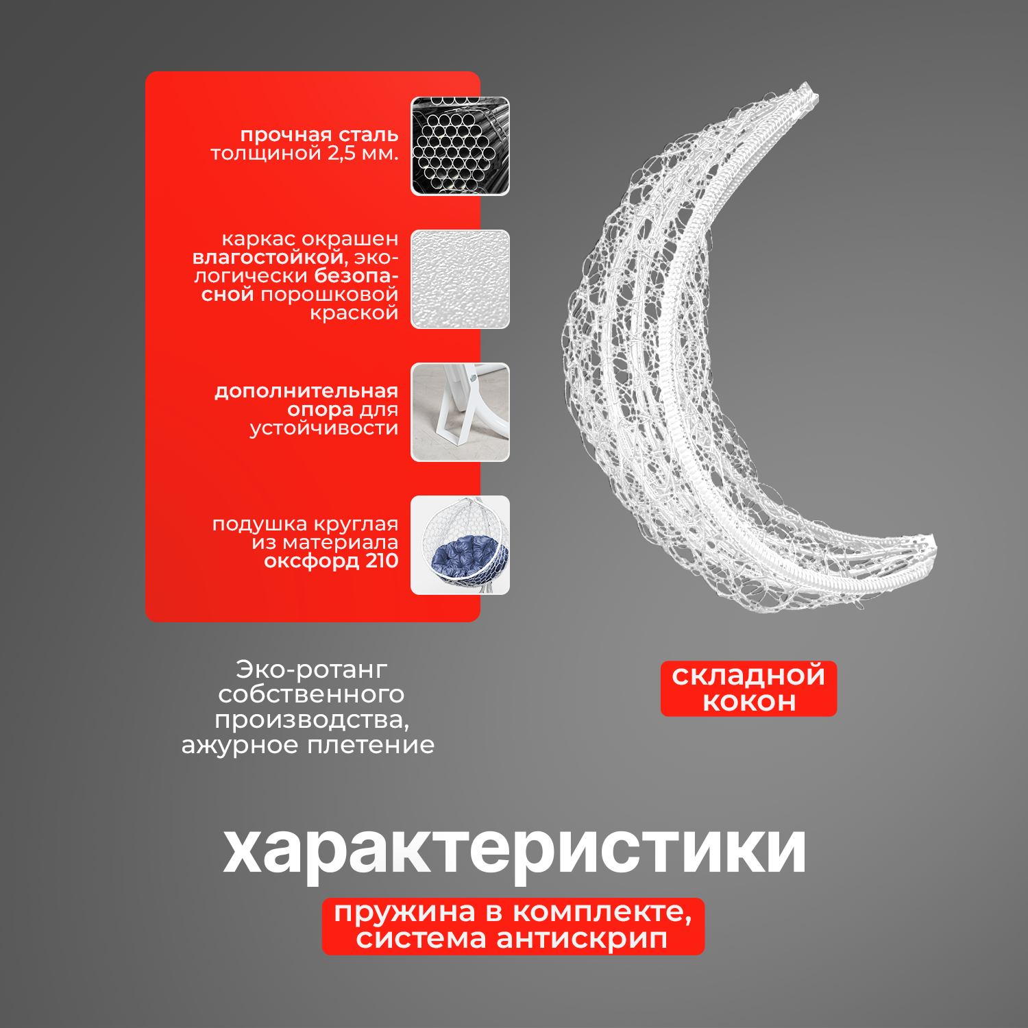 СохранитьПодвесное кресло-кокон с Серой подушкой HomeKokon, усиленная стойка до 200кг, 175х105х68 интересное:
