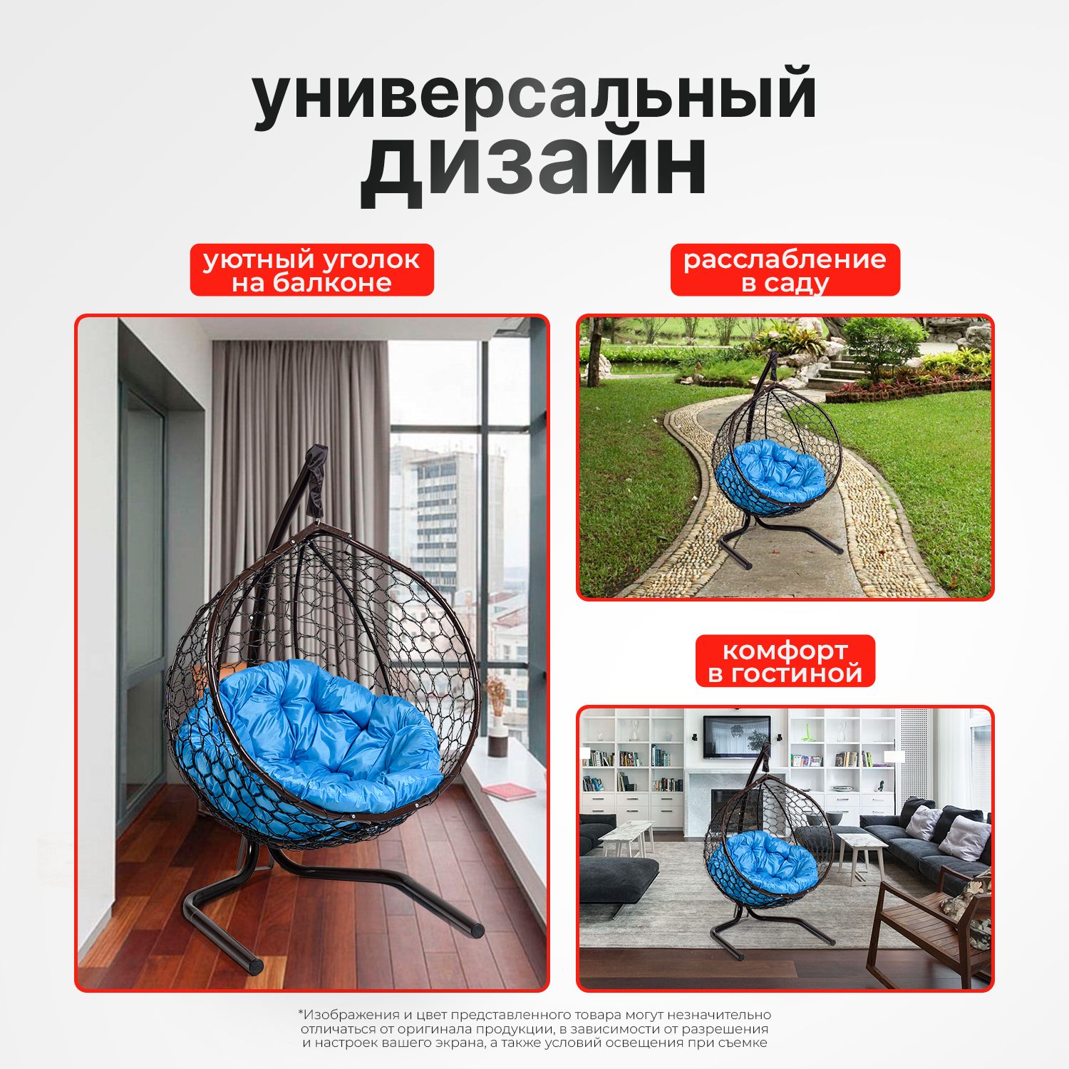 | Комплектация | В комплект входит: 1) Сборно-разборная металлическая стойка. 2) Складной кокон с плетением Ажур. 3) Подушка в виде трапеции. 4) Комплект креплений с S-образными крючками. Изображения и цвет представленного товара могут незначительно отличаться от оригинала продукции, в зависимости от разрешения и настроек вашего экрана, а также условий освещения при съемке. Производитель оставляет за собой право вносить изменения в конструкцию не ухудшающие изделие. |