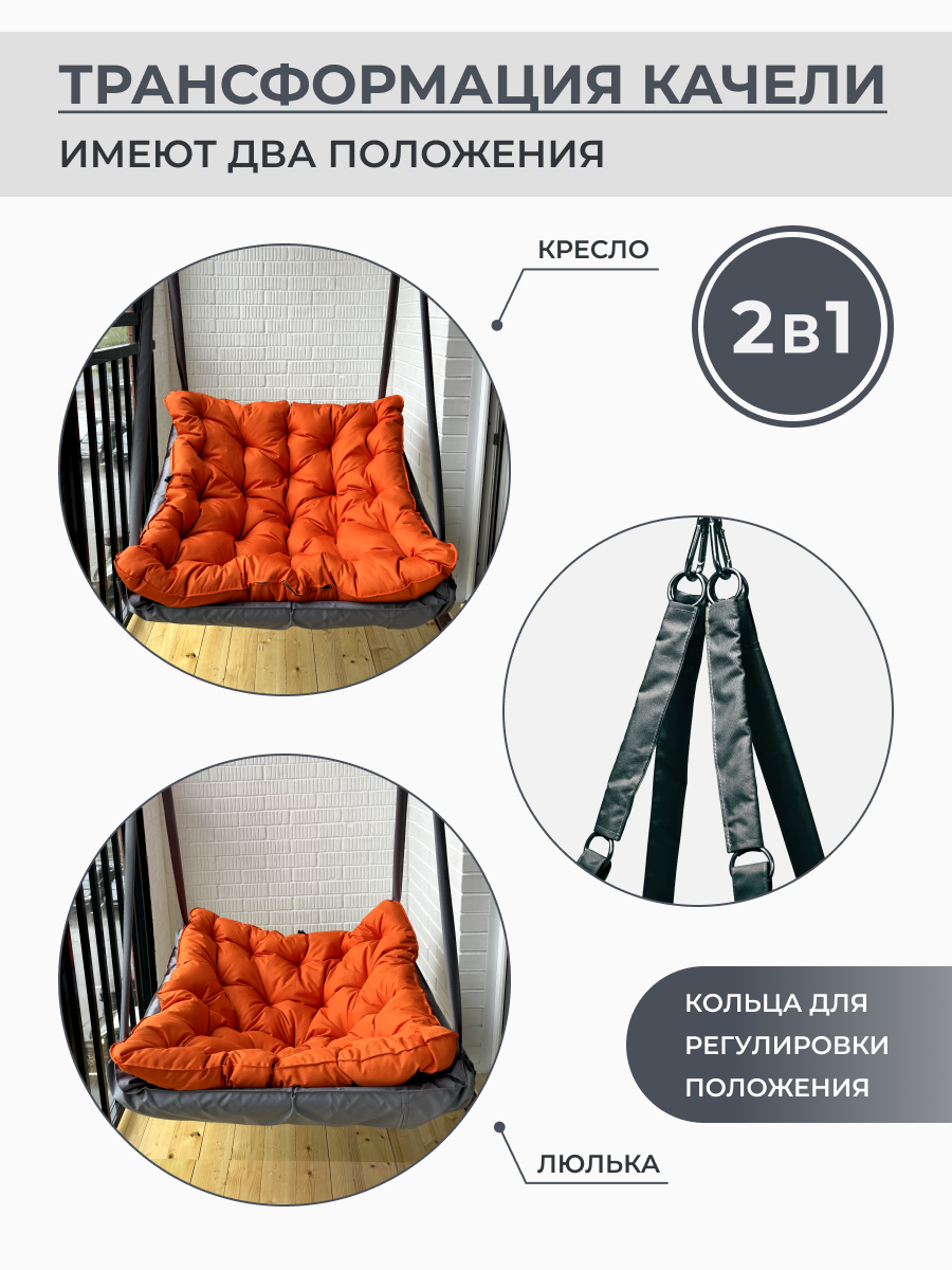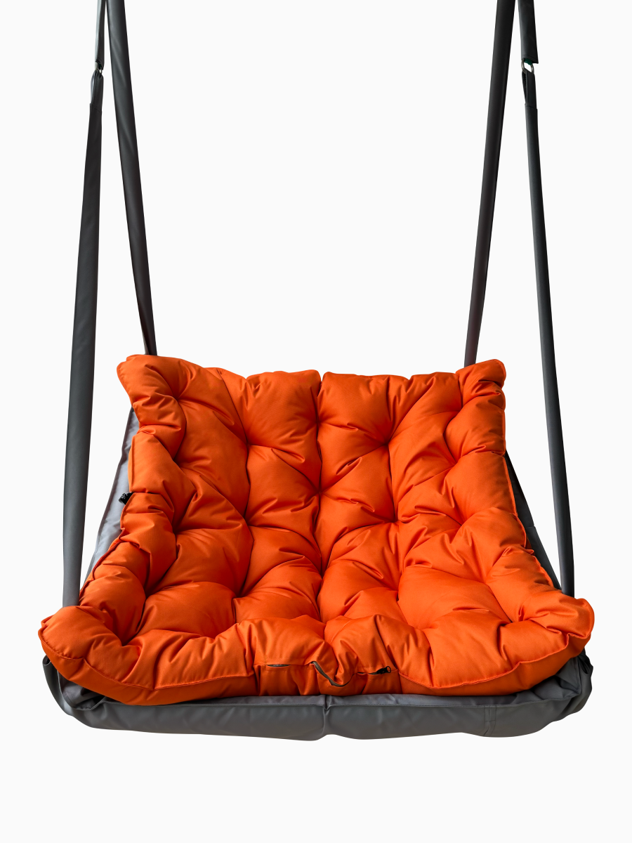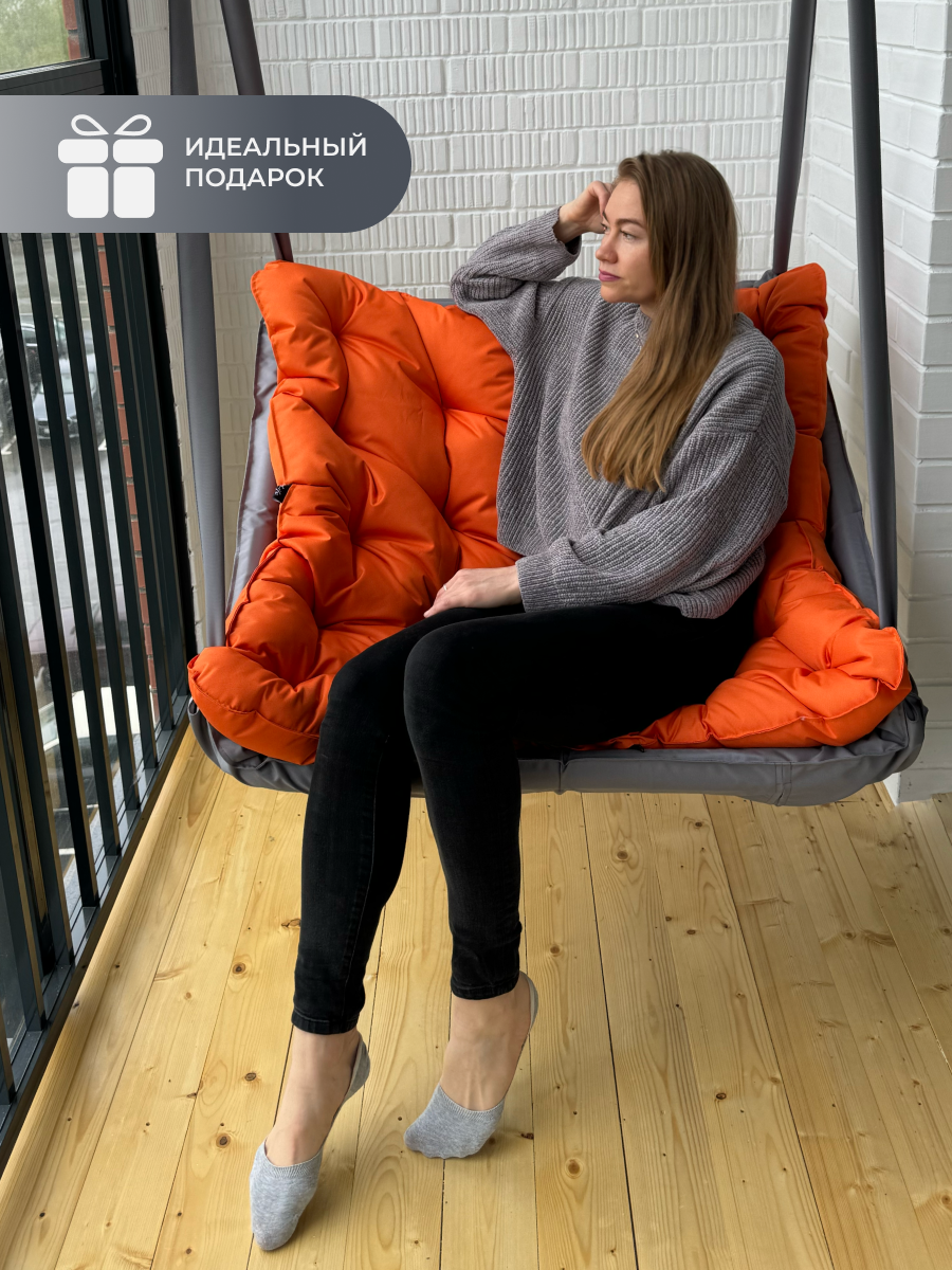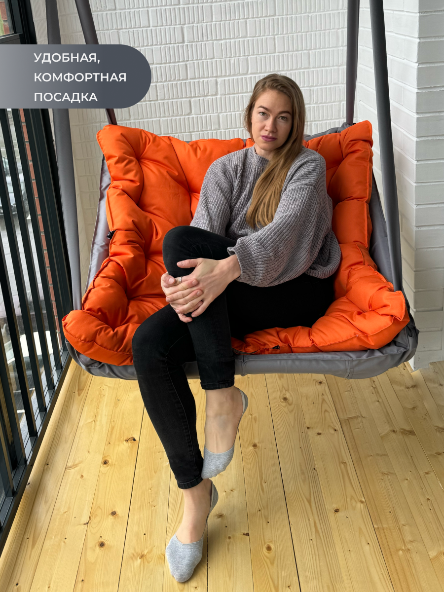 Подвесное кресло качели уличные серый с оранжевой подушкой