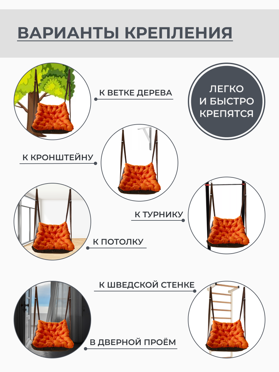 Ниже Вы можете прочитать отзывы на Подвесное кресло качели уличные коричневый с оранжевой подушкой, ознакомится с подробными характеристиками, посмотреть интересные обзоры и фотографии на Подвесное кресло качели уличные коричневый с оранжевой подушкой.