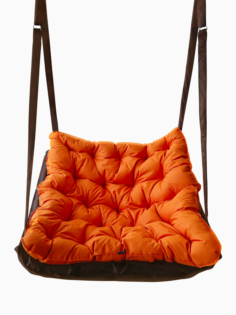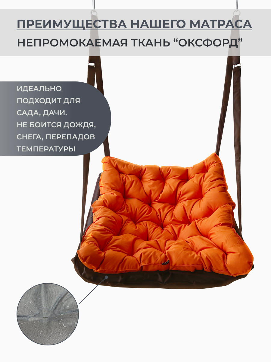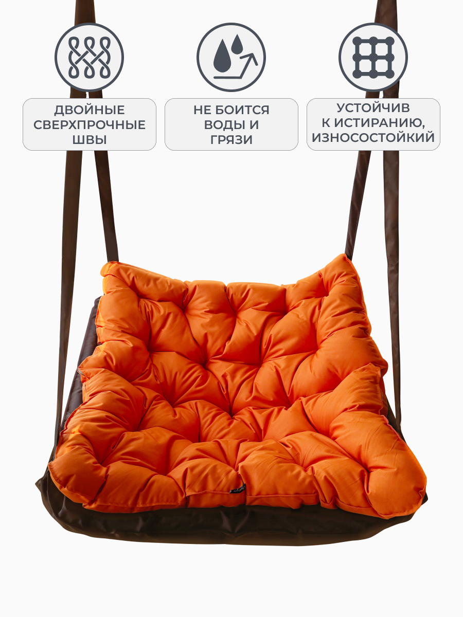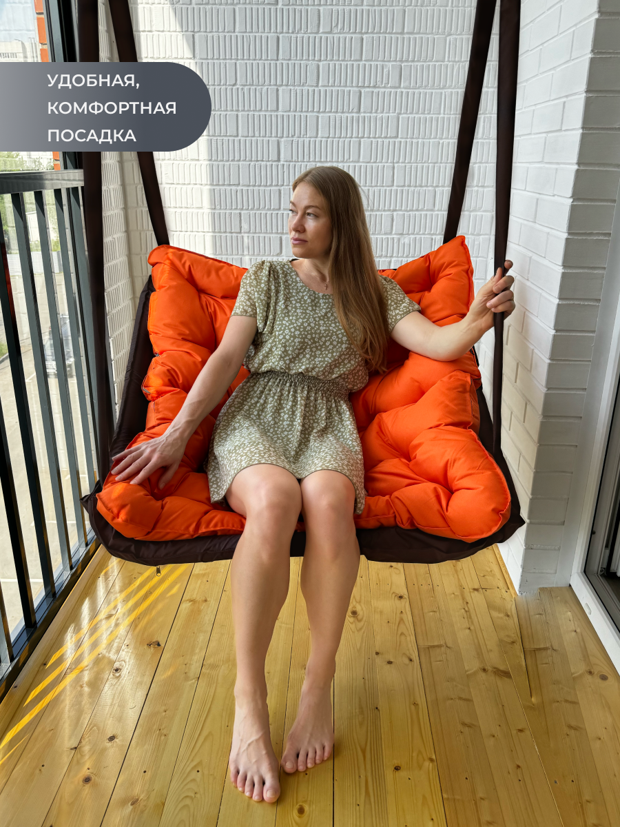 Купить Подвесное кресло качели уличные коричневый с оранжевой подушкой