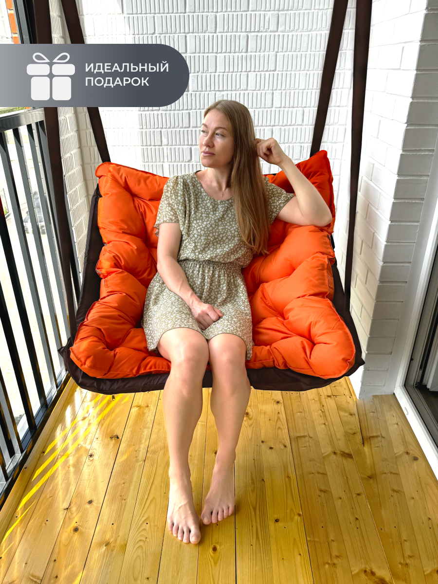 СохранитьПодвесное кресло качели уличные коричневый с оранжевой подушкой интересное: