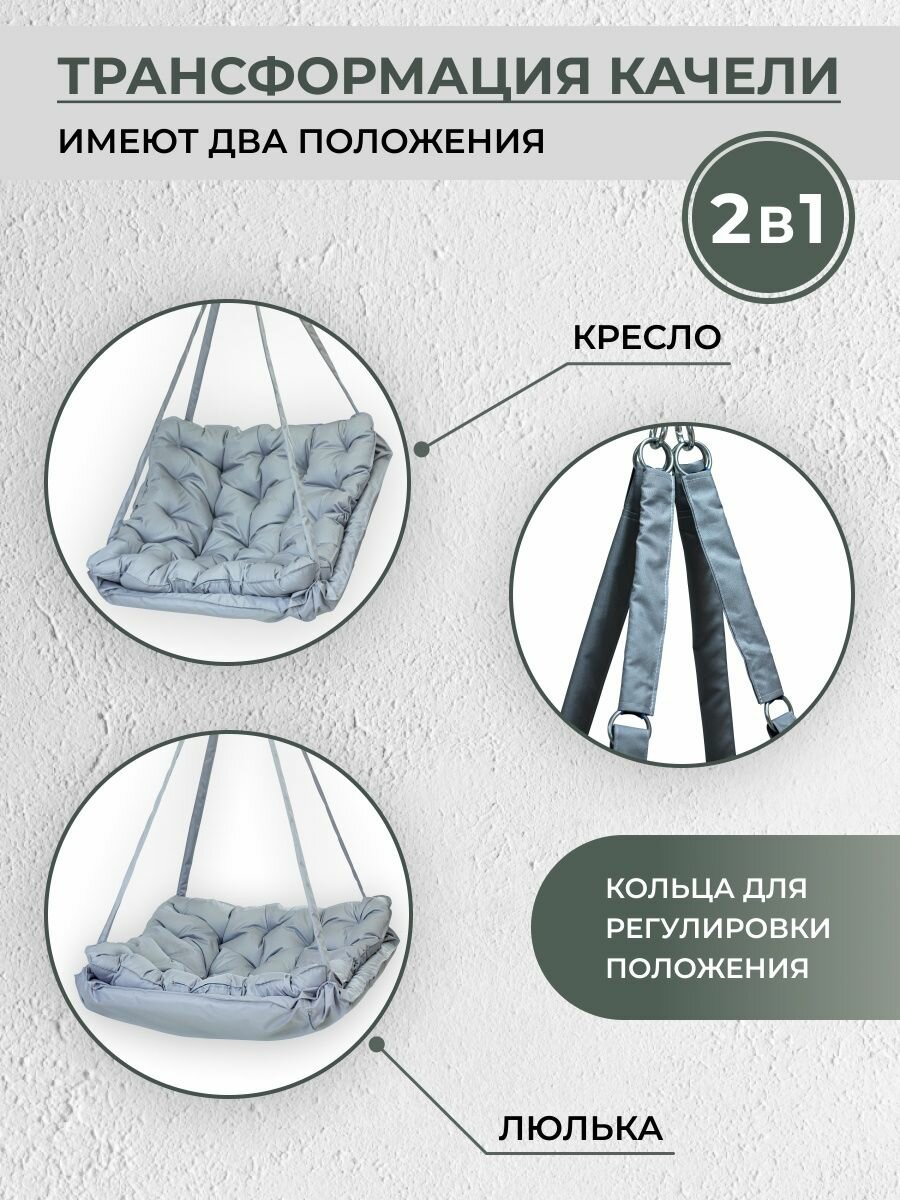 Подвесное кресло качели уличные серый с темно-зеленой подушкой