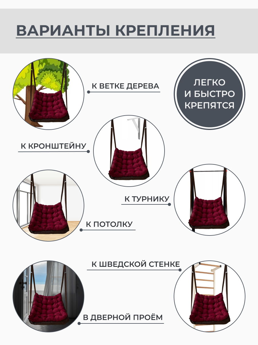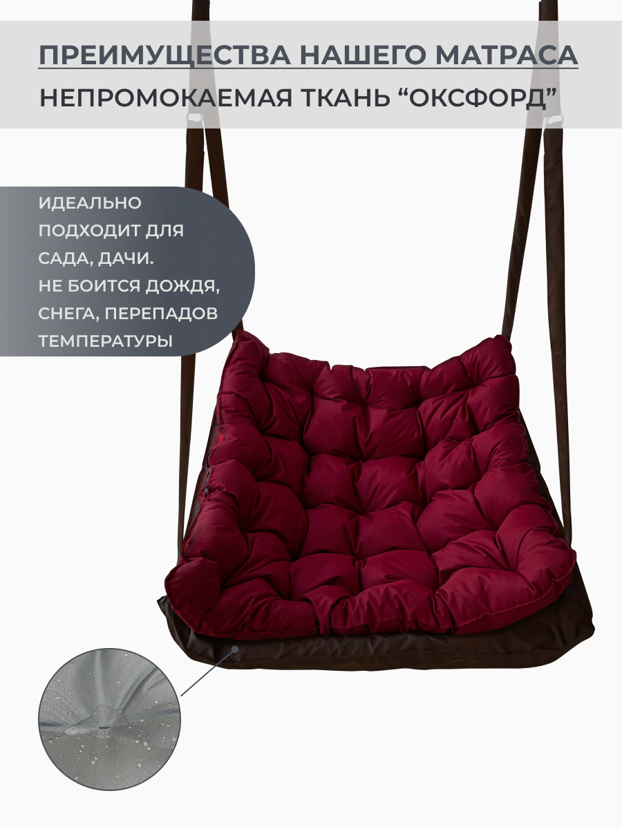 Ниже Вы можете прочитать отзывы на Подвесное кресло качели уличные коричневый с бордовой подушкой, ознакомится с подробными характеристиками, посмотреть интересные обзоры и фотографии на Подвесное кресло качели уличные коричневый с бордовой подушкой.