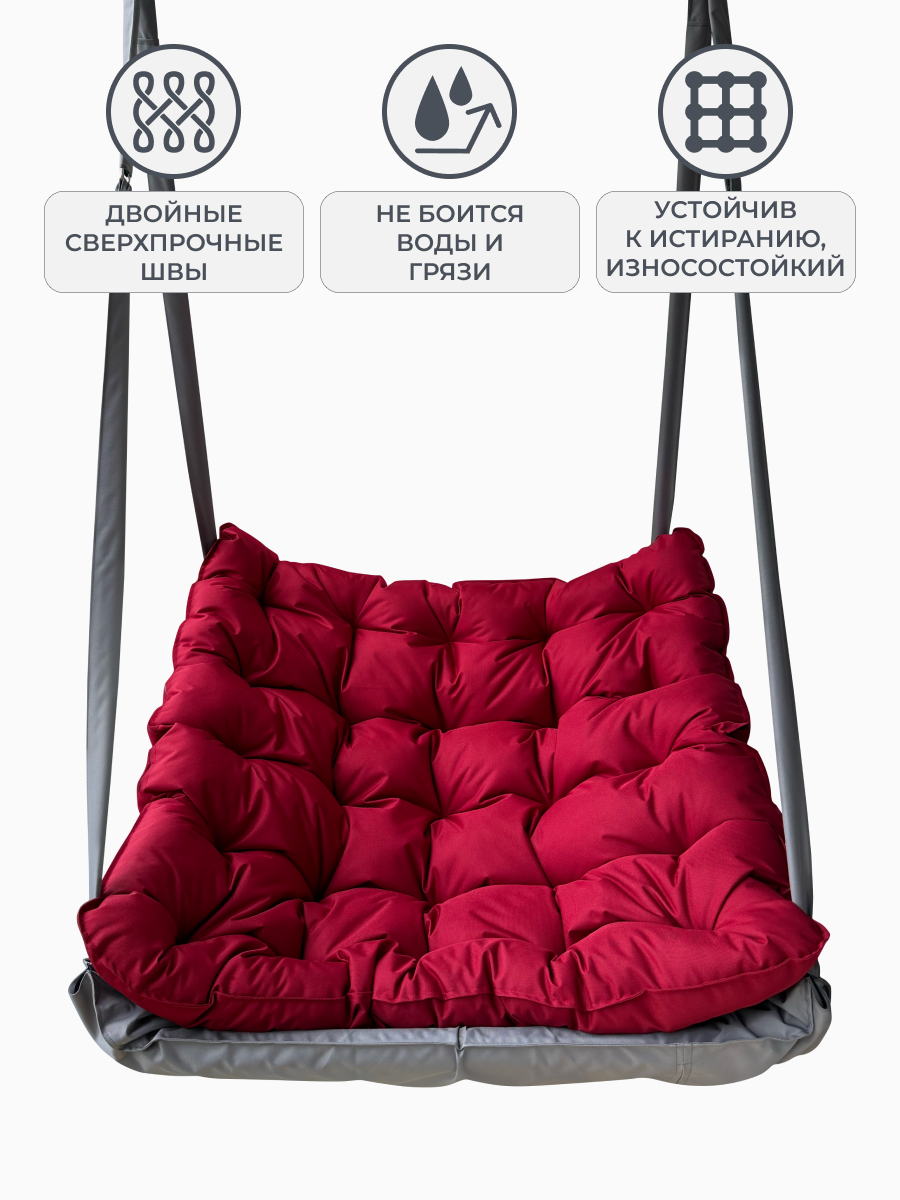 Подвесное кресло качели уличные темно-серый с бордовой подушкой