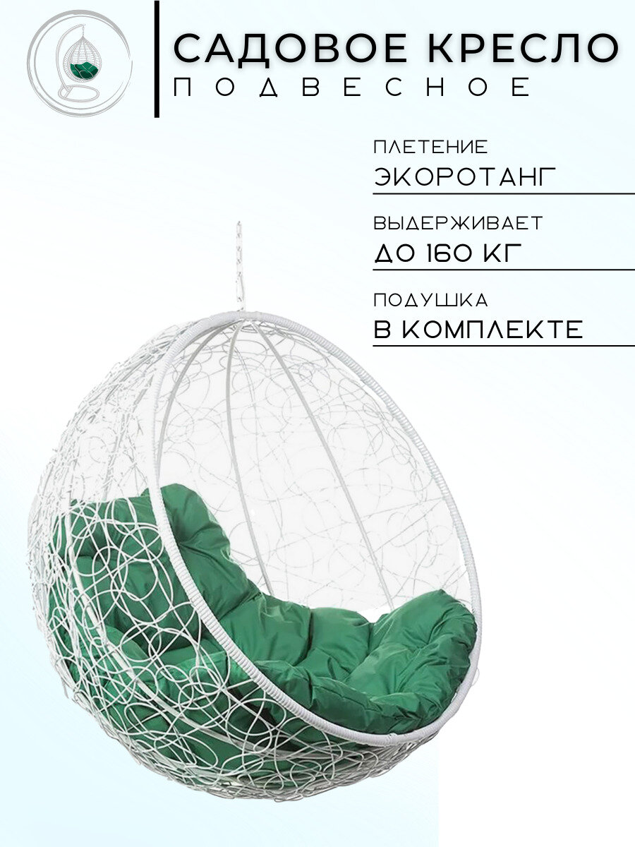 Кресло подвесное Bigarden "Kokos", белое, без стойки, зеленая подушка интересное: