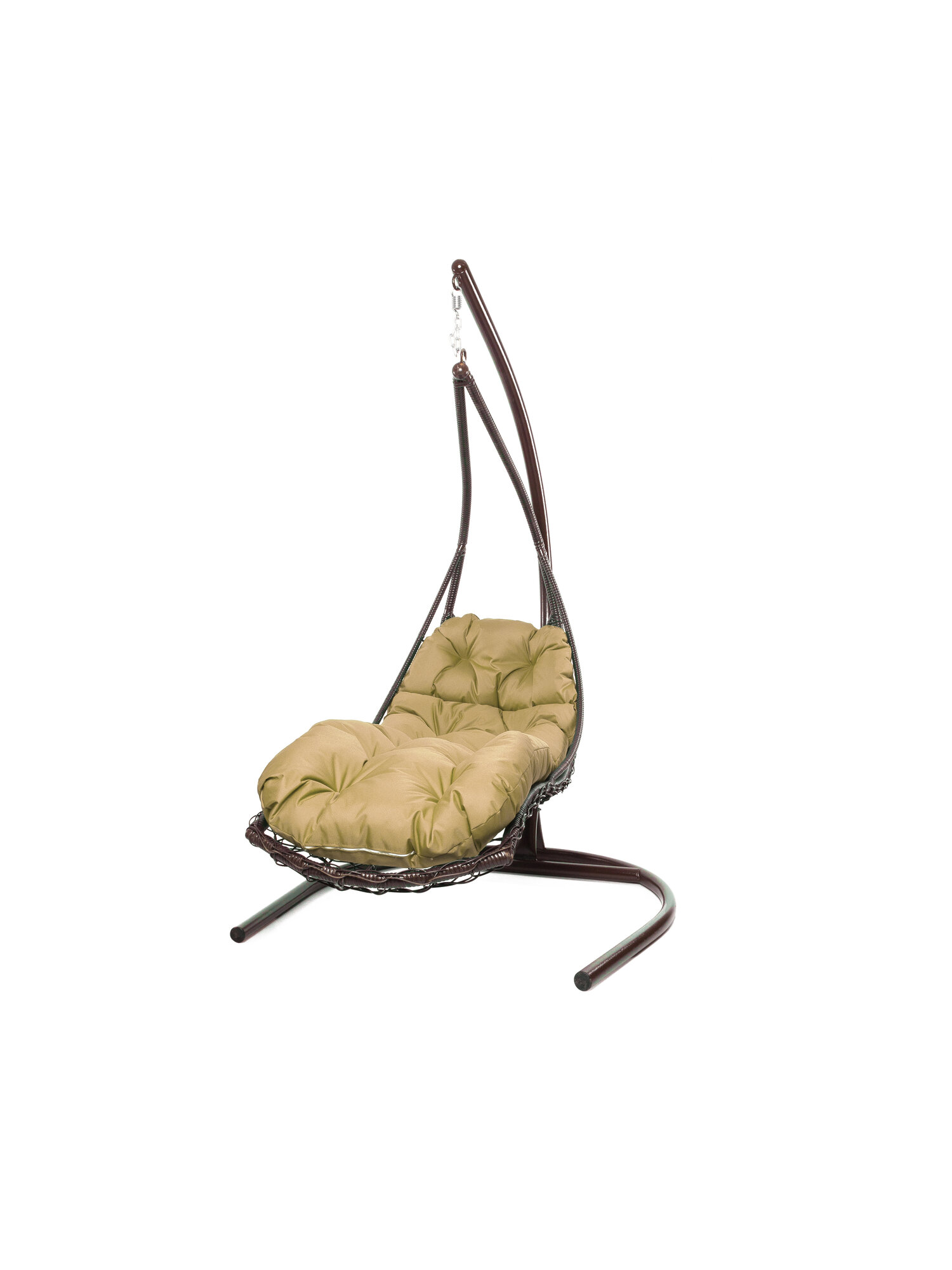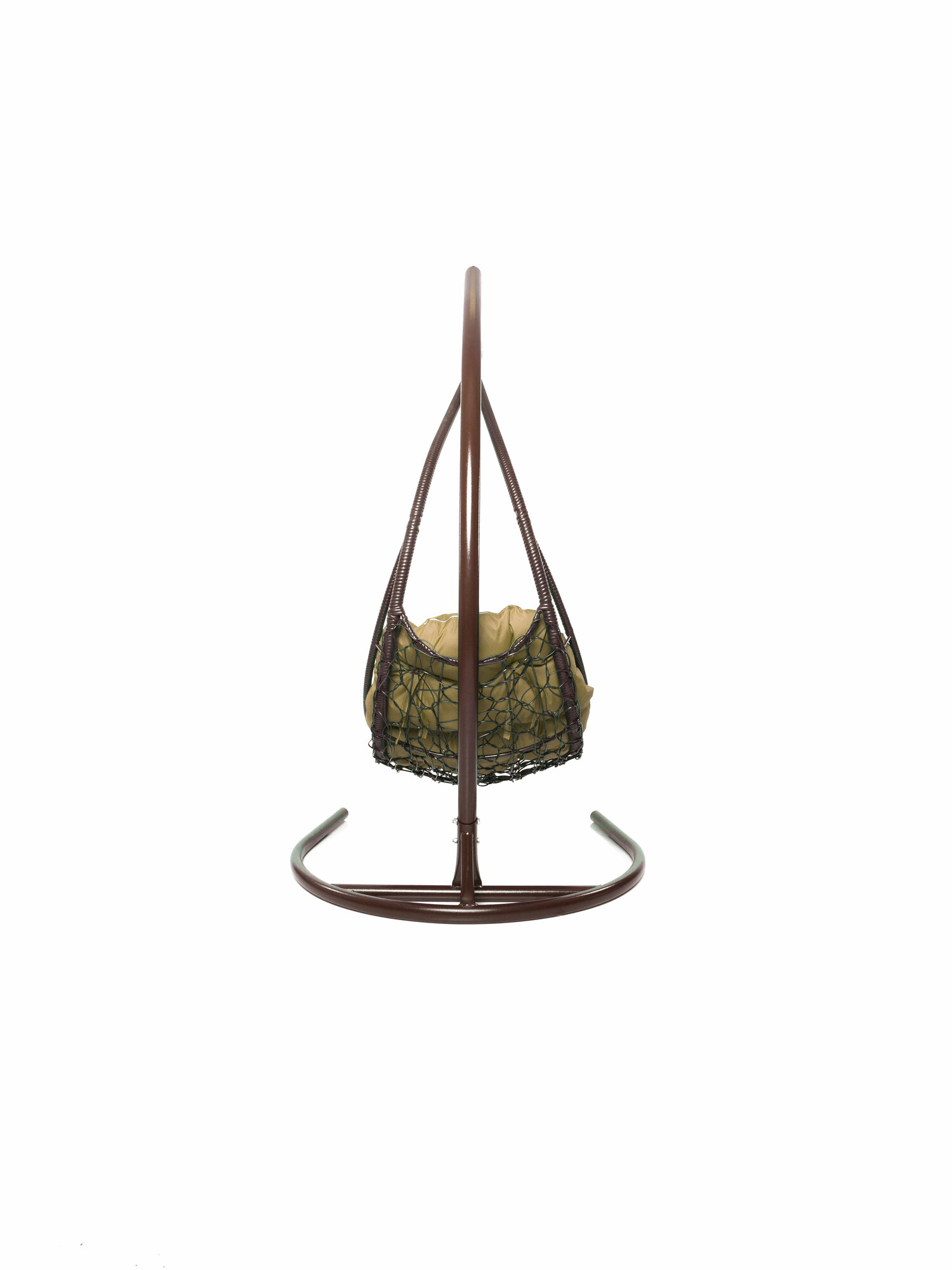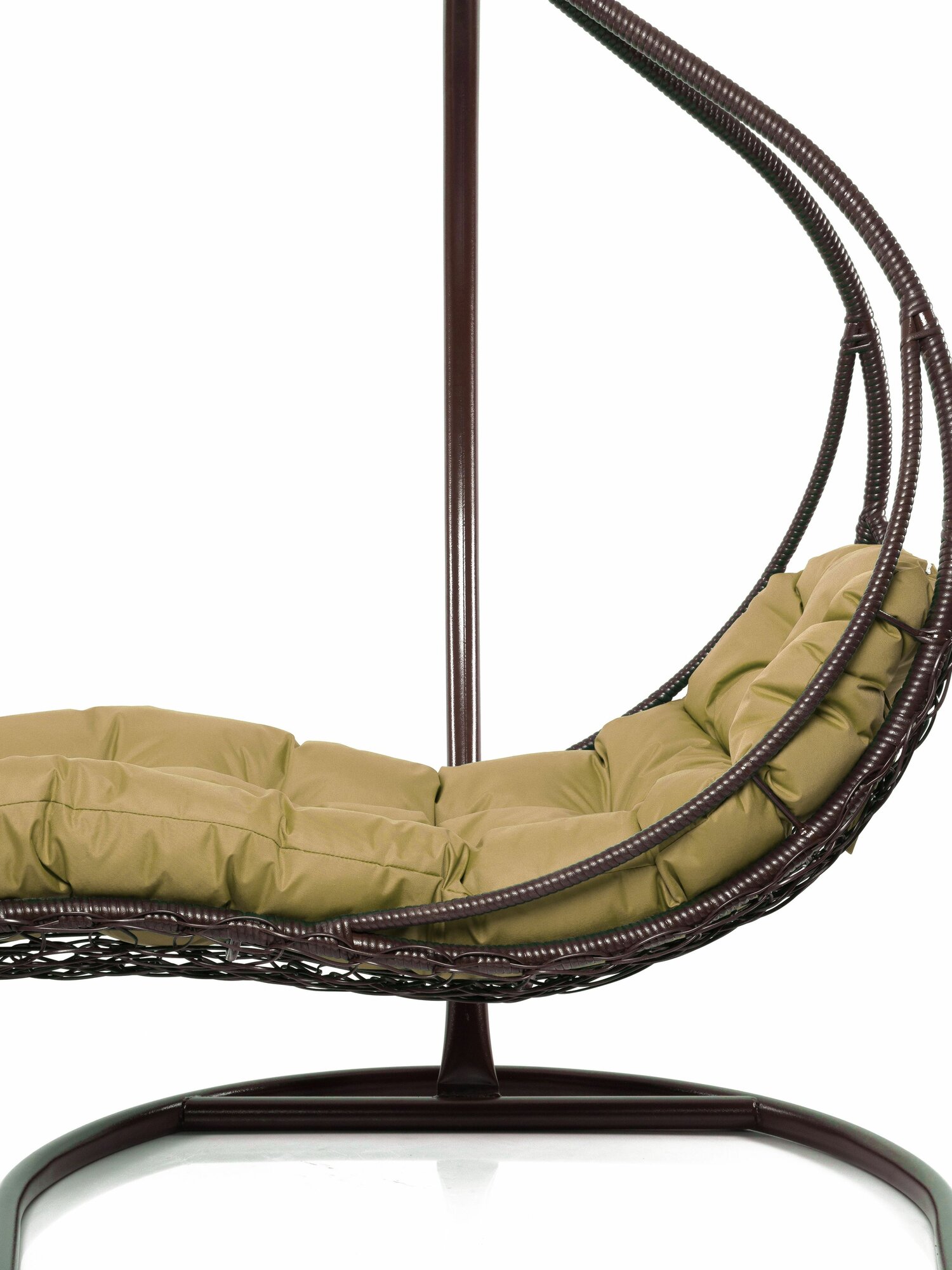 Купить Подвесное кресло лежачее, с ротангом коричневое, бежевая подушка