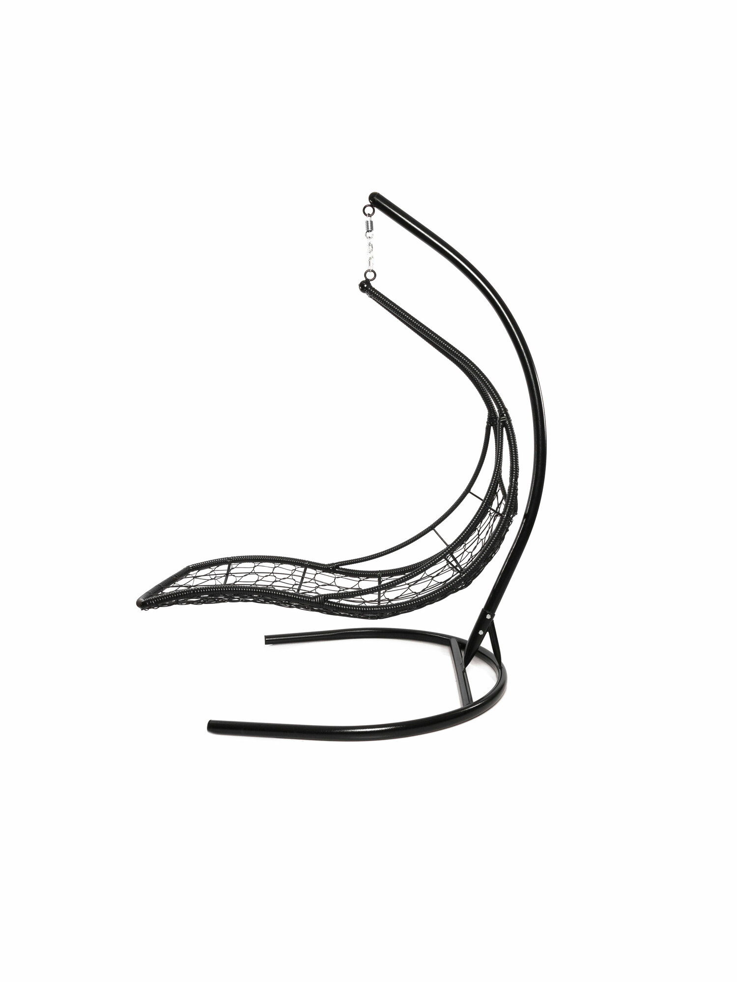 Подвесное кресло лежачее, с ротангом черное, серая подушка