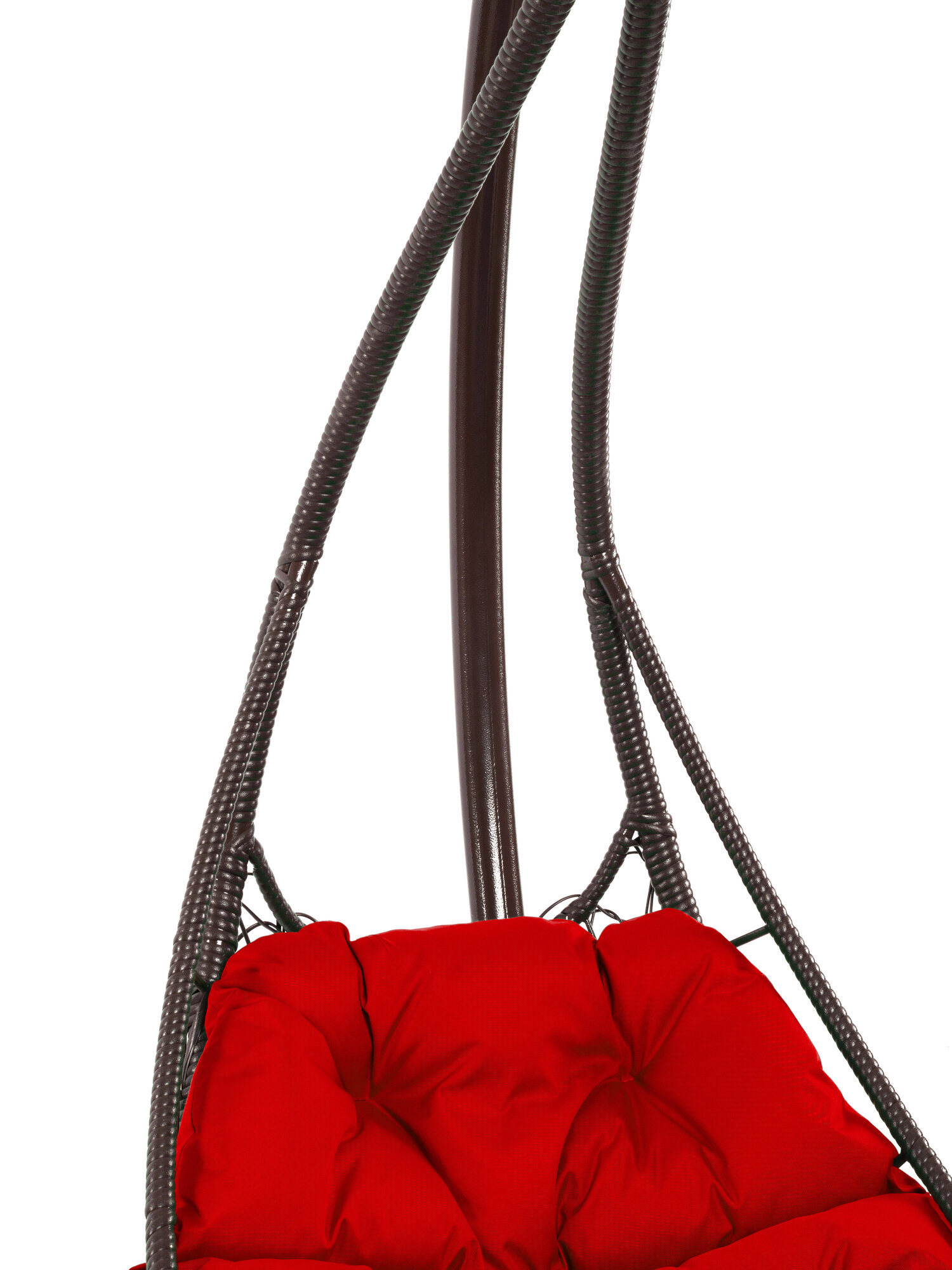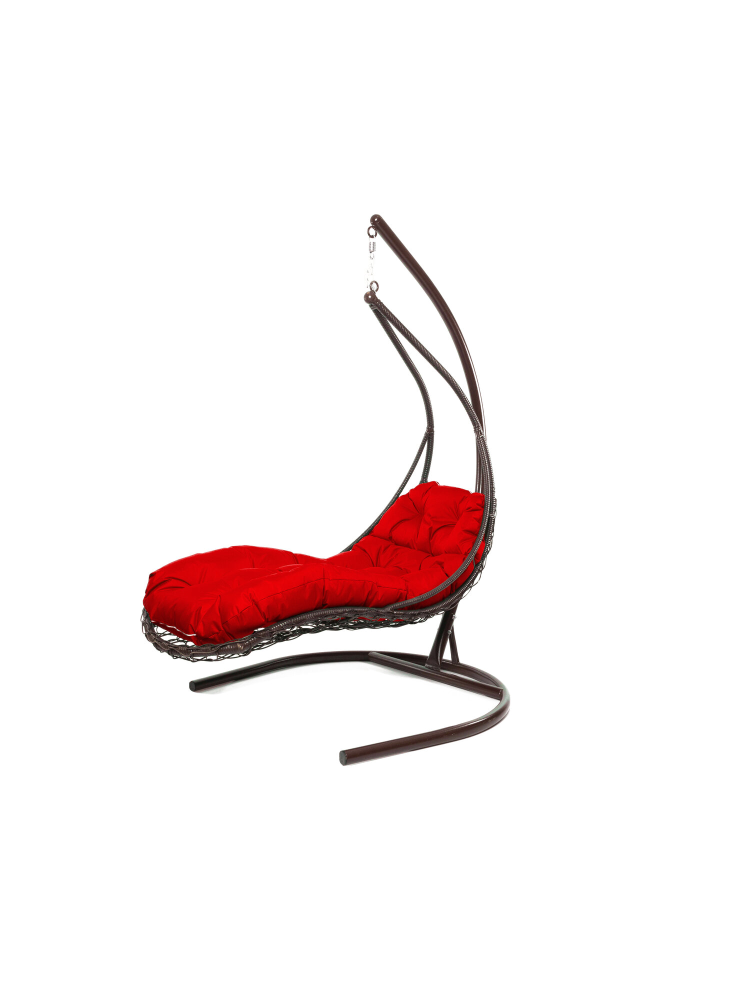 Купить Подвесное кресло лежачее, с ротангом коричневое, красная подушка