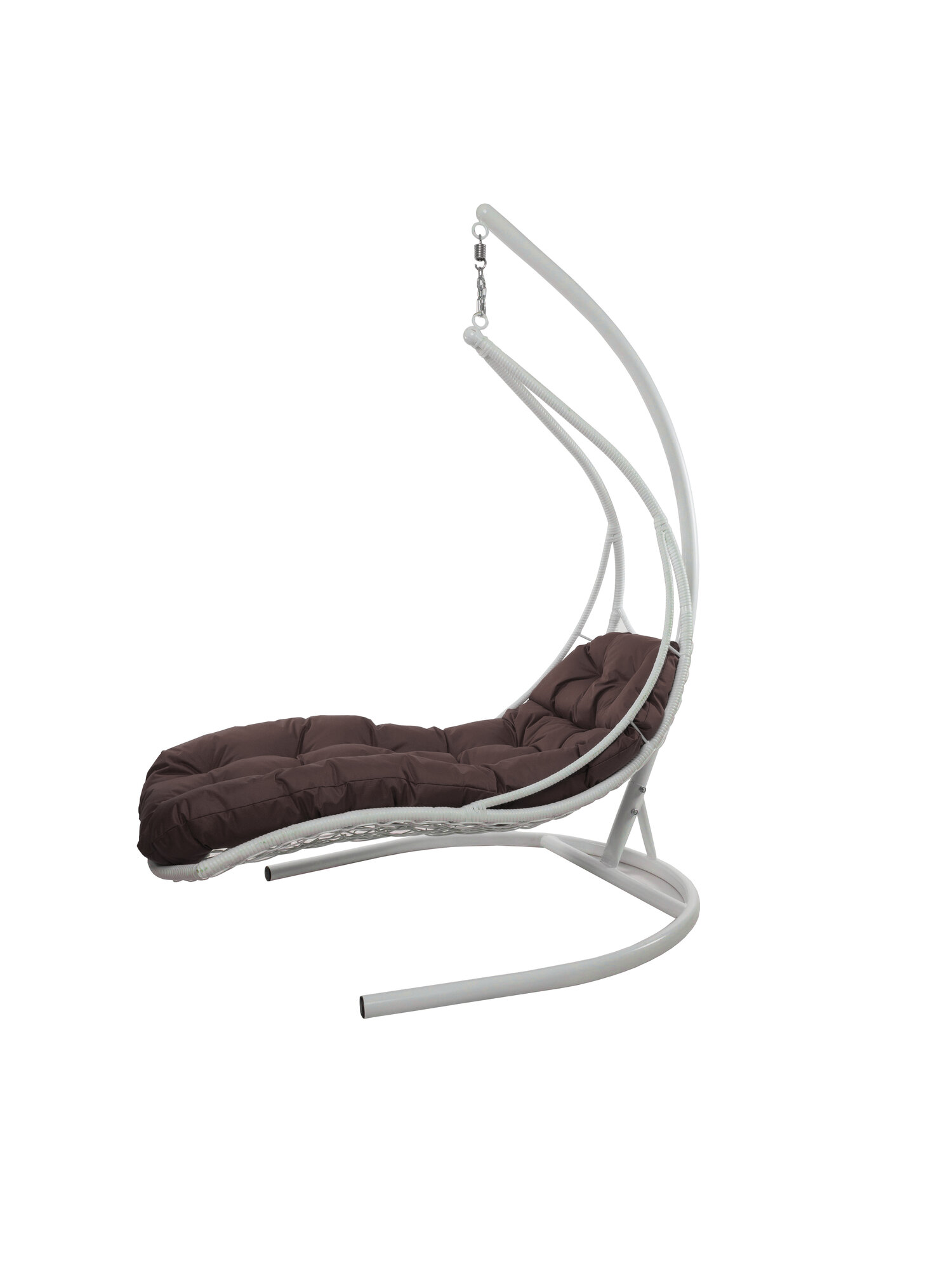 Купить Подвесное кресло лежачее, с ротангом белое, коричневая подушка