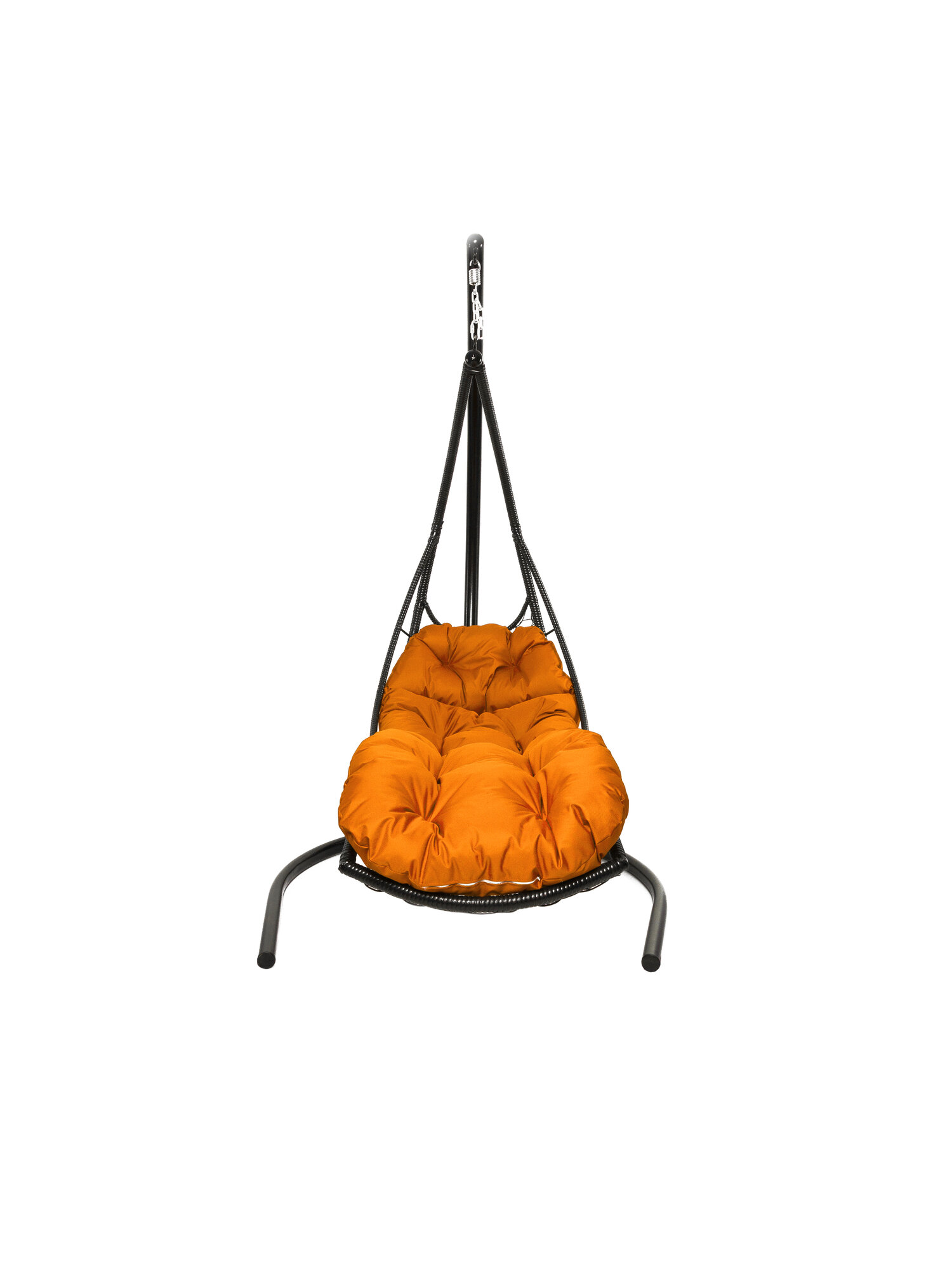 Купить Подвесное кресло лежачее, с ротангом черное, оранжевая подушка