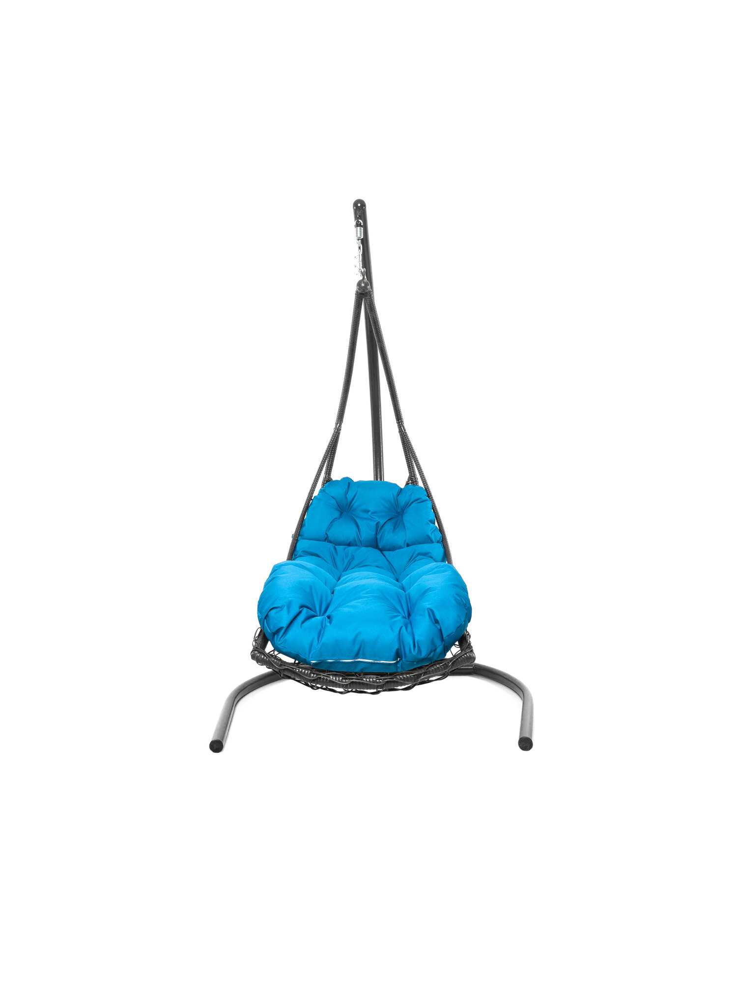 Подвесное кресло лежачее, с ротангом черное, голубая подушка