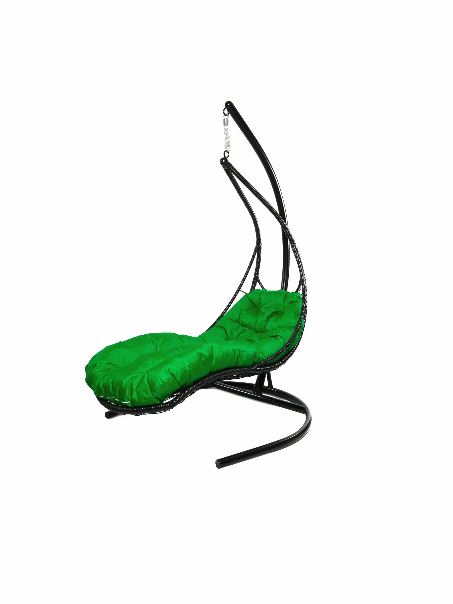 Подвесное кресло M-group лежачее с ротангом черное зелёная подушка