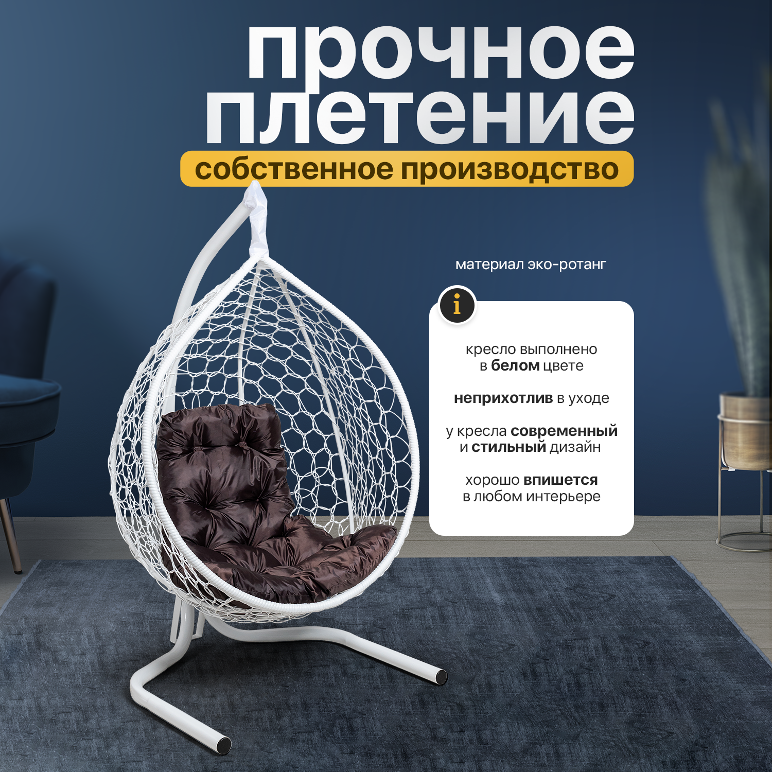 СохранитьПодвесное кресло кокон STULER Plaint Ажур Белый 160х63х100 мягкое садовое кресло с коричневой подушкой интересное: