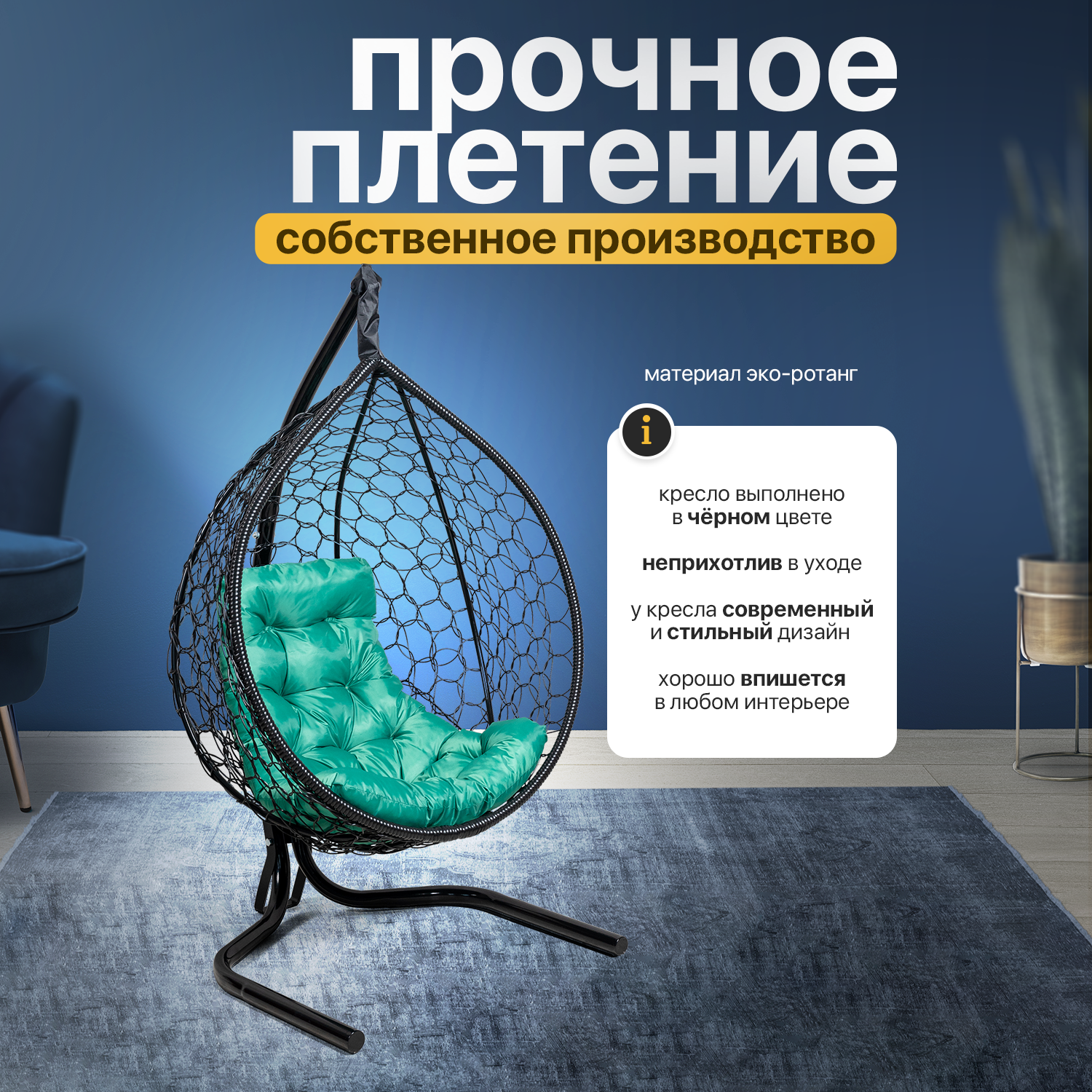 СохранитьПодвесное кресло кокон STULER Plaint Ажур Черный 160х63х100 мягкое садовое кресло с зеленой подушкой интересное: