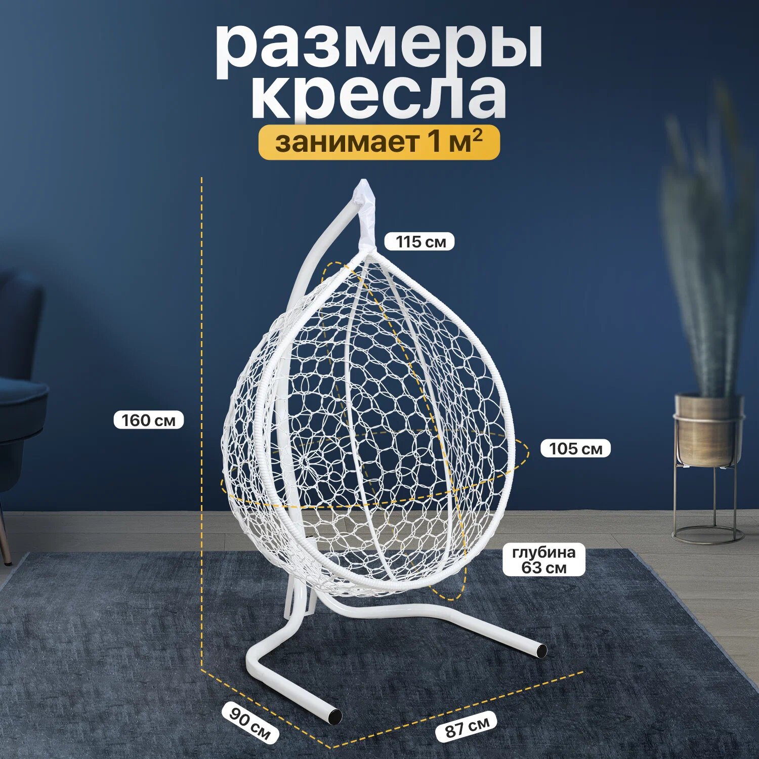 Подвесное кресло кокон STULER Plaint Ажур Белый 160х63х100 мягкое садовое кресло с бежевой подушкой