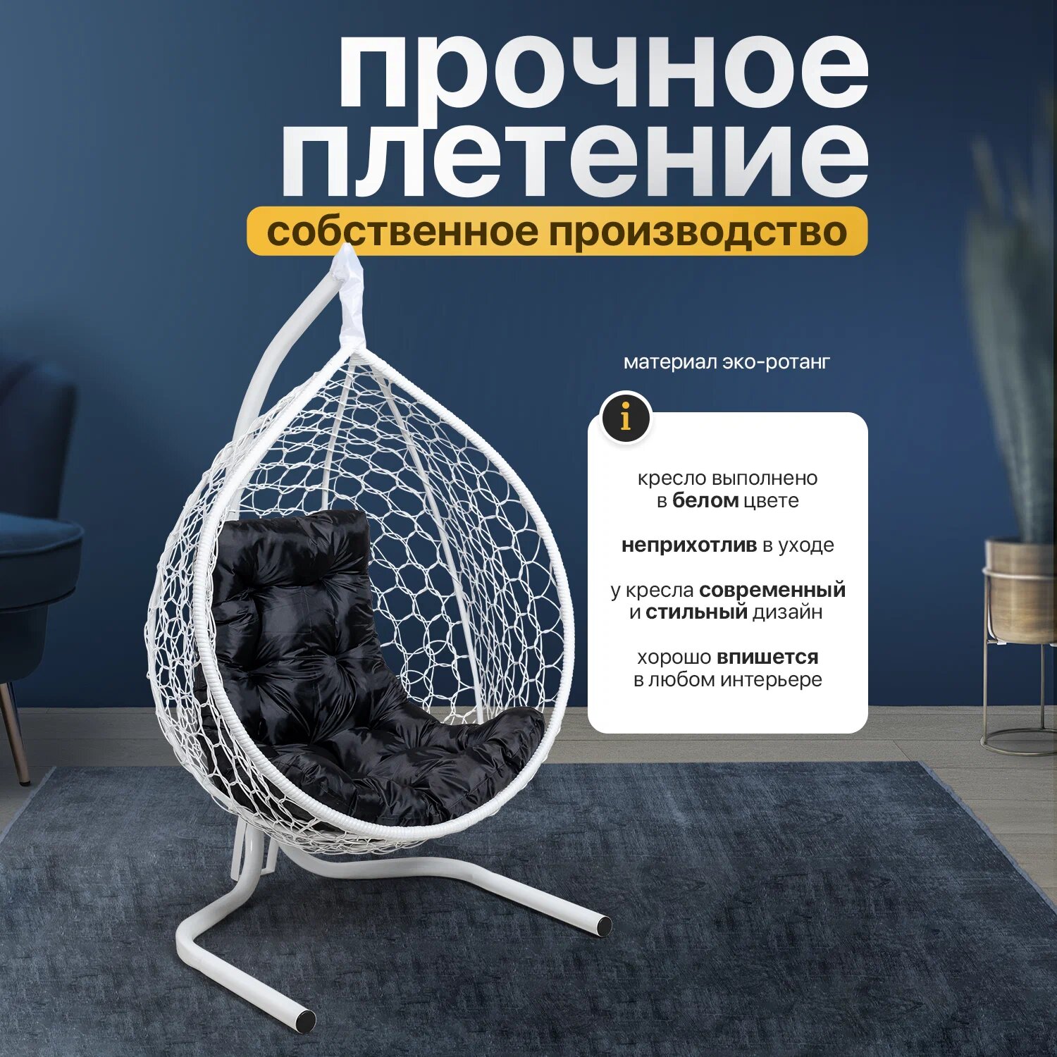 СохранитьПодвесное кресло кокон STULER Plaint Ажур Белый 160х63х100 мягкое садовое кресло с черной подушкой интересное: