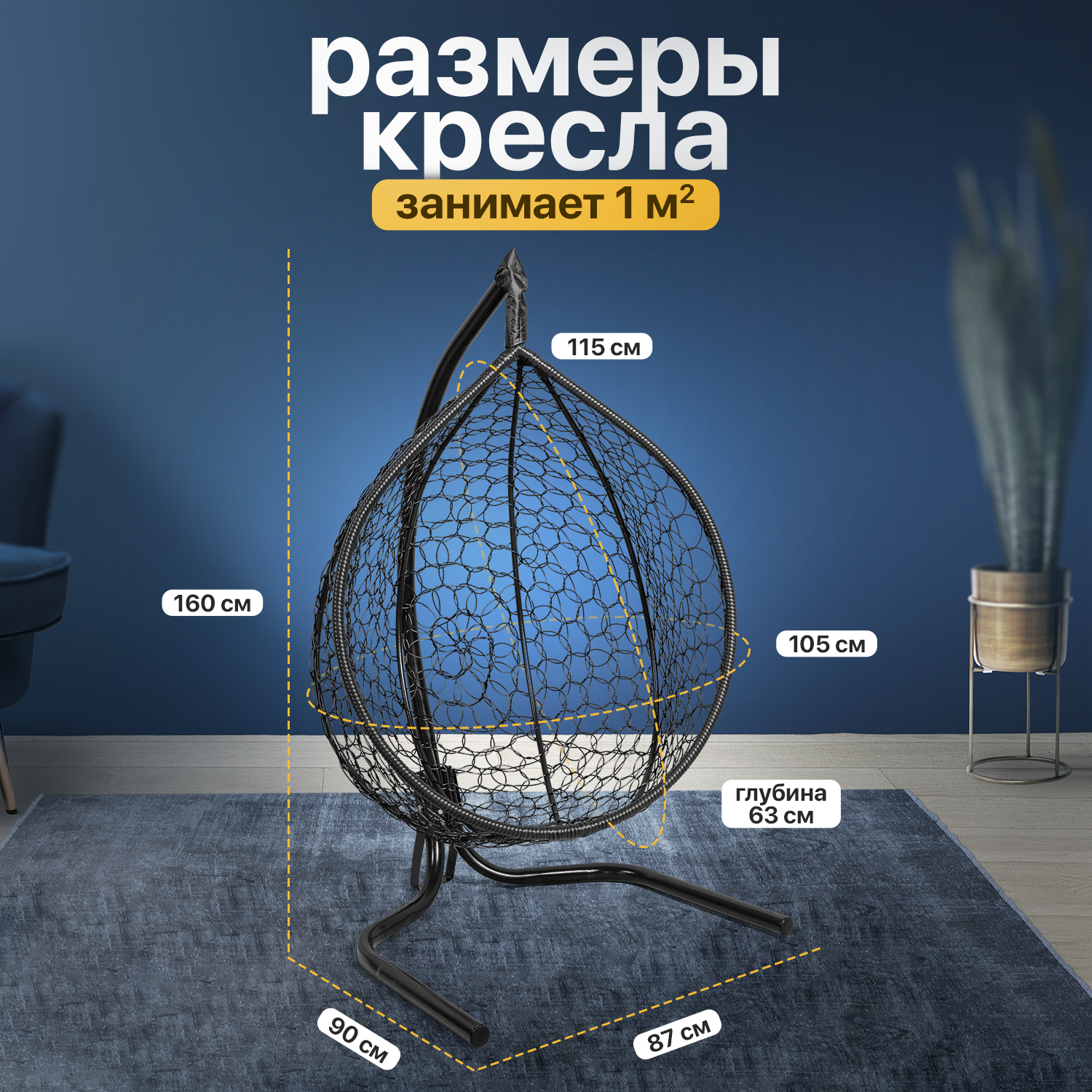 СохранитьПодвесное кресло кокон STULER Plaint Ажур Черный 160х63х100 мягкое садовое кресло с бежевой подушкой интересное: