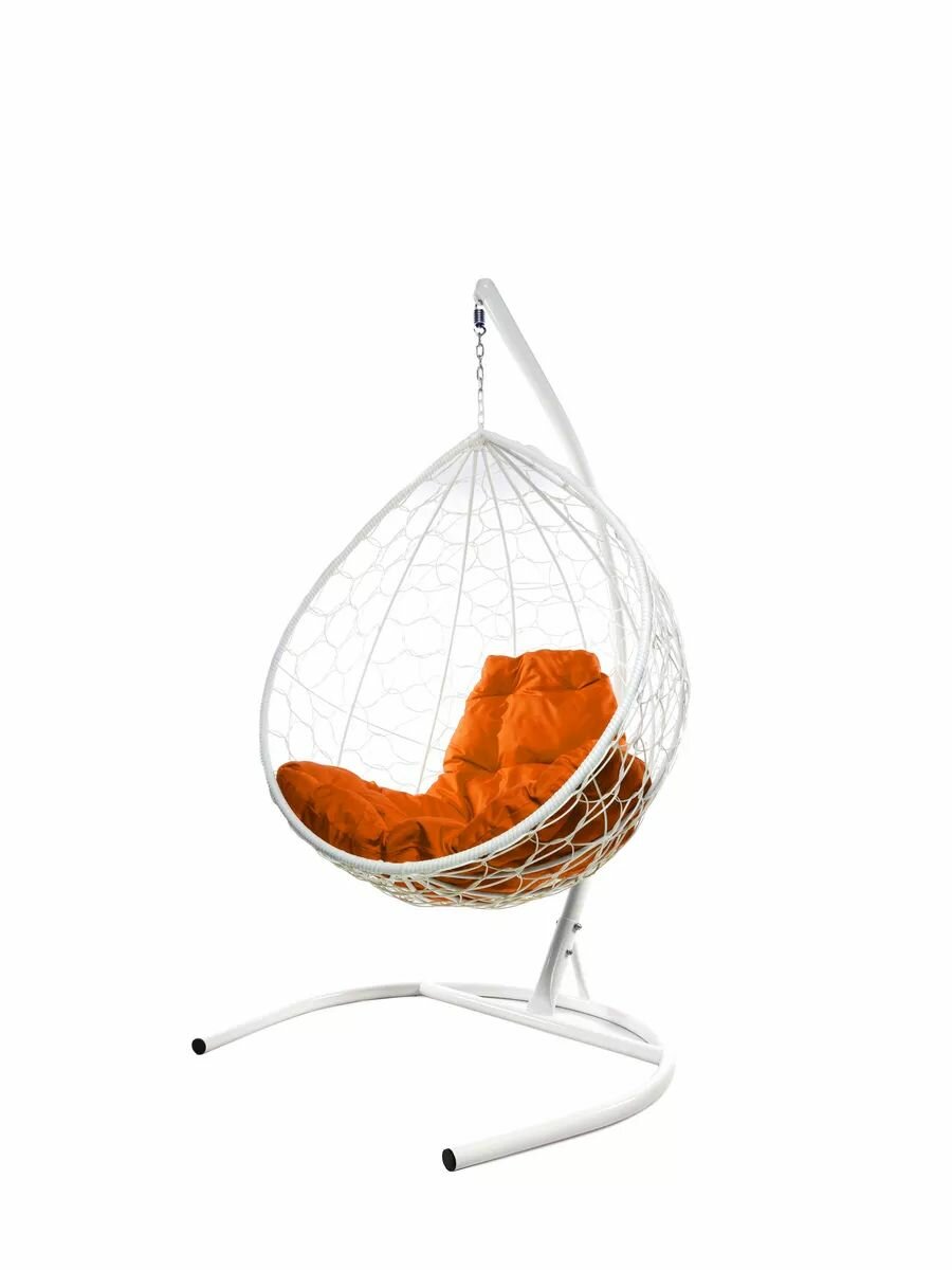 Подвесное кресло из ротанга "Капля" белое с оранжевой подушкой M-Group
