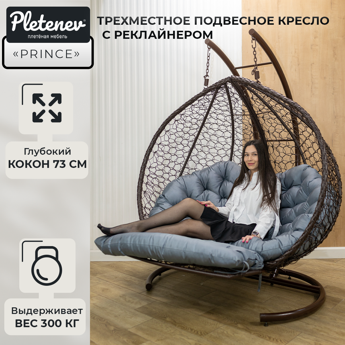 Подвесное кресло Prince трехместное Коричневое с реклайнером (с подножкой) и Серой водоотталкивающей подушкой интересное: