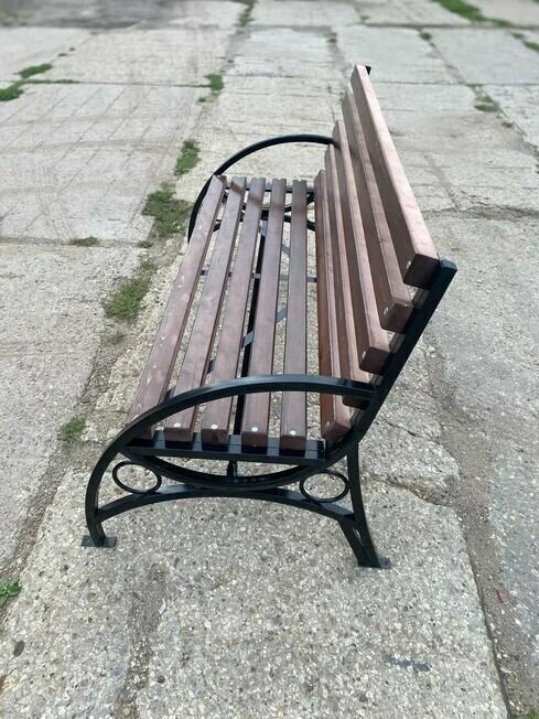Скамейка садовая Классика с деревянными спинкой и сиденьем без покраски, лавочка для дачи с металлическим каркасом