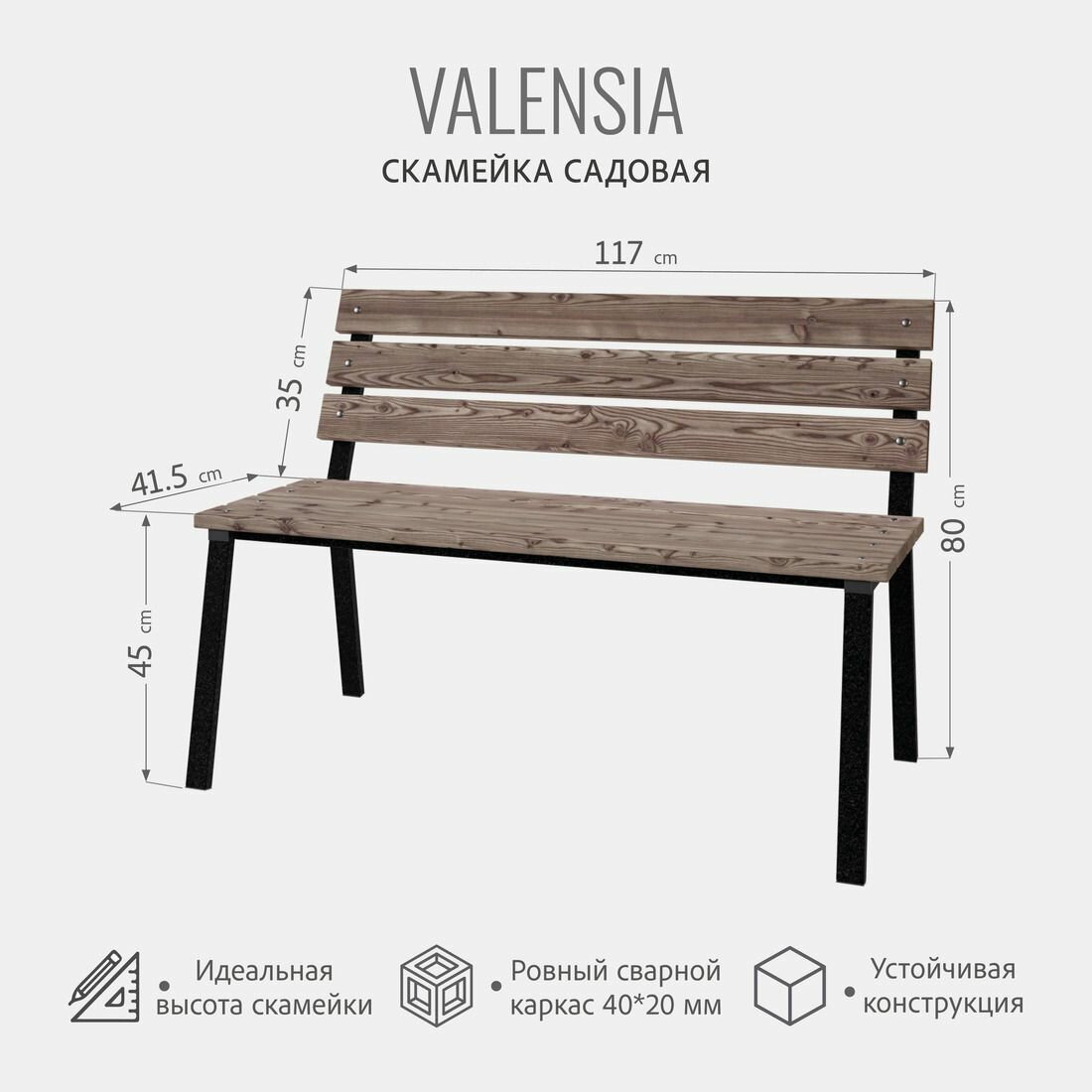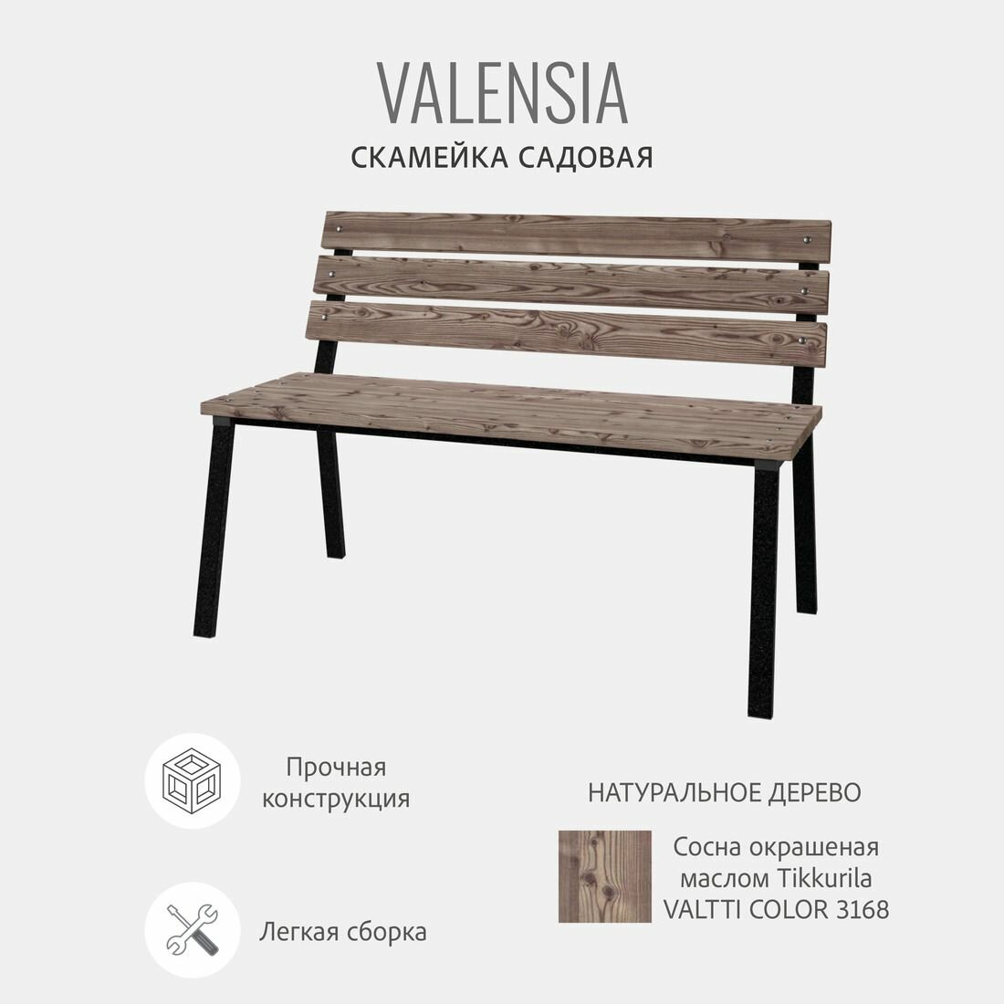 Скамейка садовая VALENSIA + , скамья со спинкой, для сада, для дома, для огорода, в баню, дом и сад, 1шт, гростат