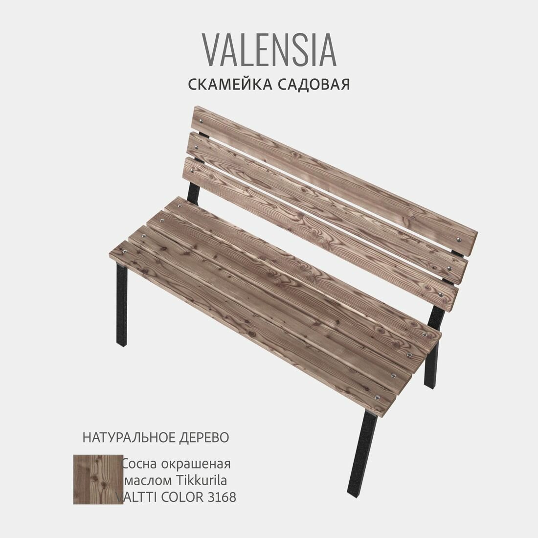 Скамейка садовая Классика с деревянными спинкой и сиденьем без покраски, лавочка для дачи с металлическим каркасом