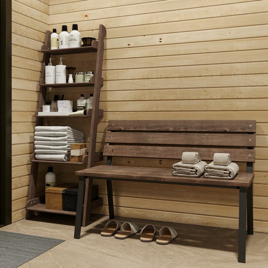 Скамейка садовая VALENSIA Г, серая, скамья со спинкой loft, для сада, в баню, гростат