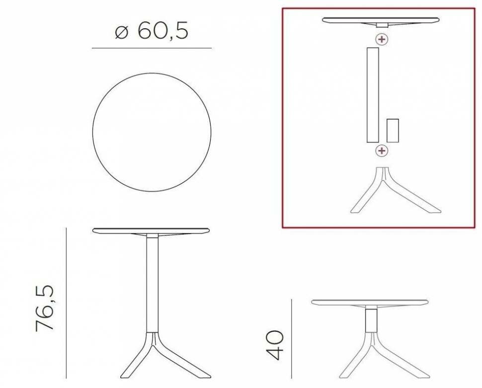 | Дополнительная информация | Комплект поставки: столешница, ножки, два варианты опоры (для установки на двух высотах: 400 и 765 мм). |
