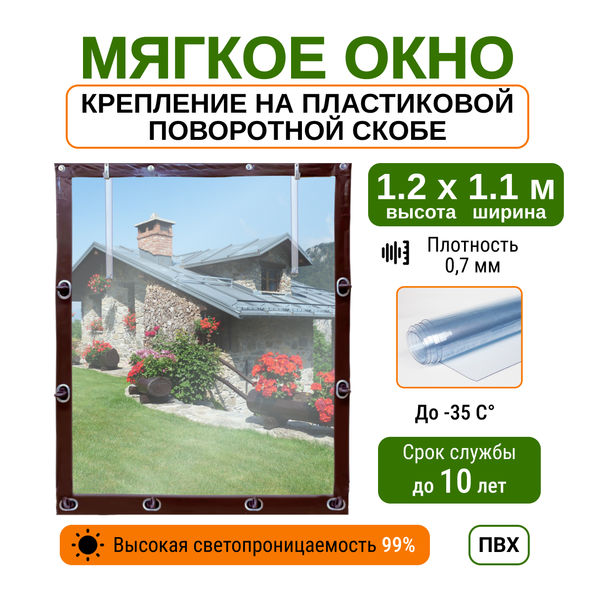 СохранитьМягкое окно 1.2х1.1м для беседки, веранды и террасы с пластиковыми креплениями, коричневое интересное: