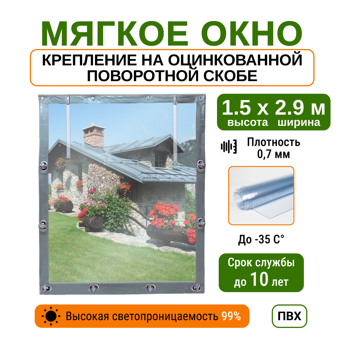 Купить Мягкое окно 1.5х2.9м для беседки, веранды и террасы с металлическими креплениями, серое
