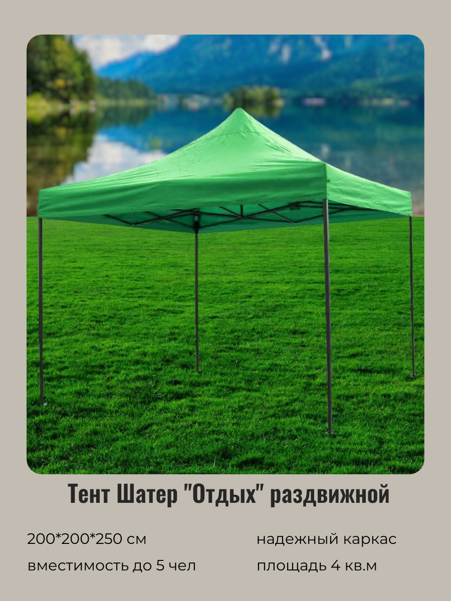 Шатер туристический, шатер для дачи, садовый 2*2*2,5м, зеленый, раздвижной интересное: