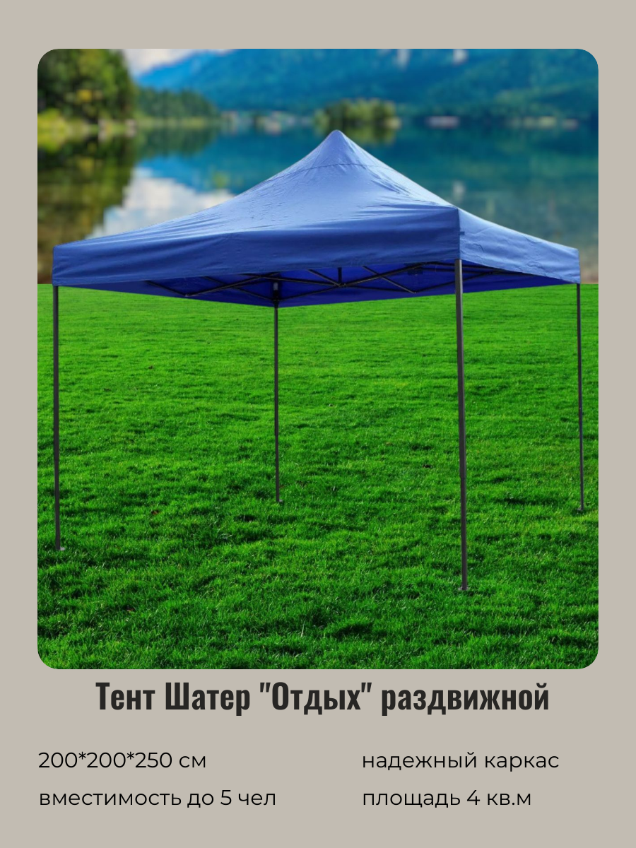 Шатер туристический, шатер для дачи, садовый 2*2*2,5м, синий, раздвижной интересное: