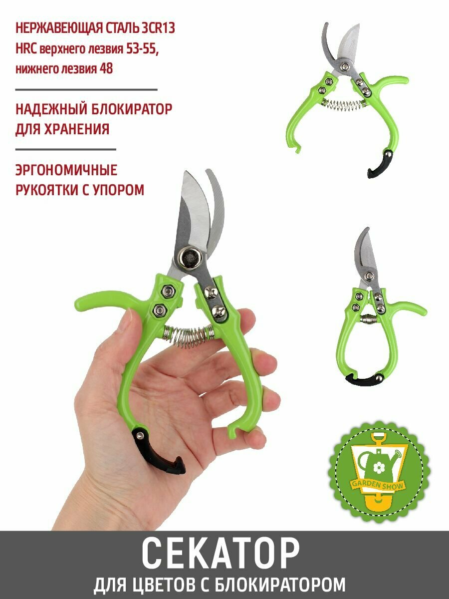 GARDEN SHOW Секатор для цветов, с блокиратором, L15,5 см, салатовый интересное: