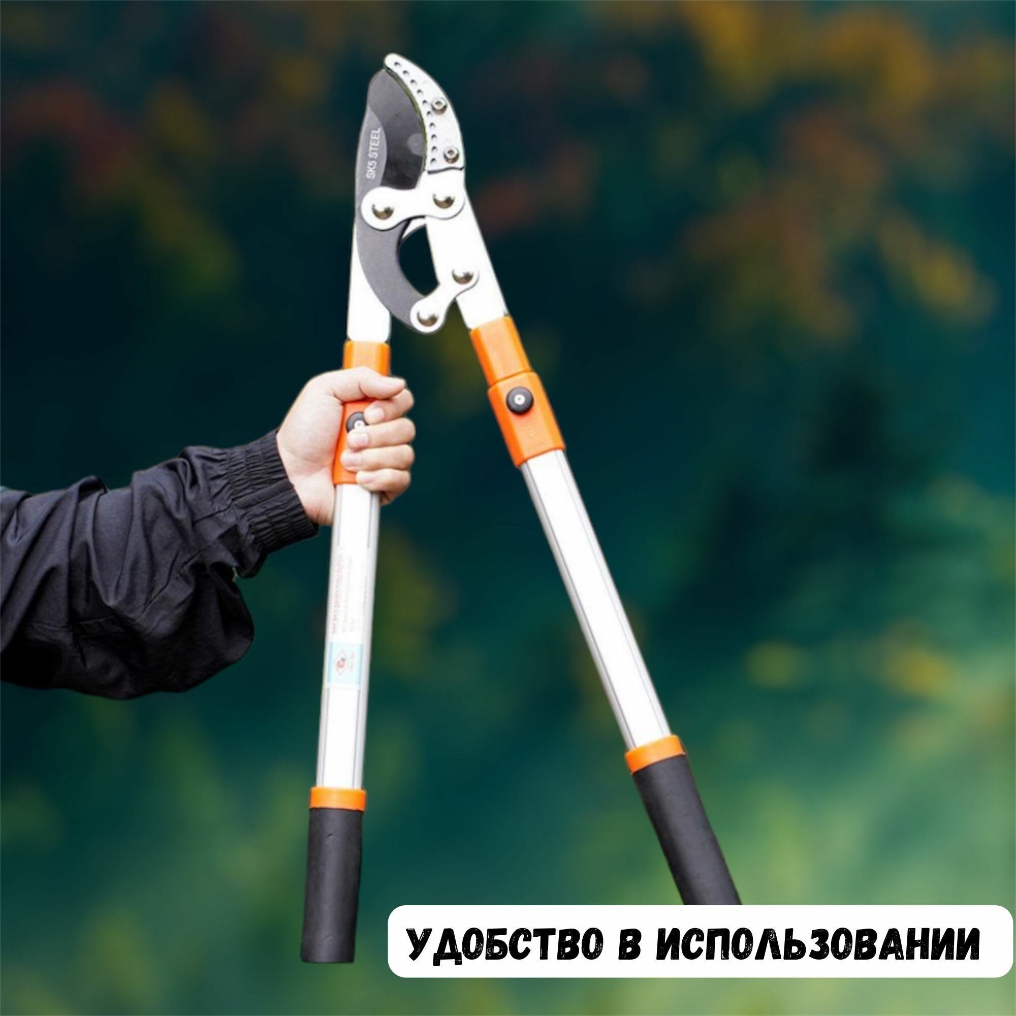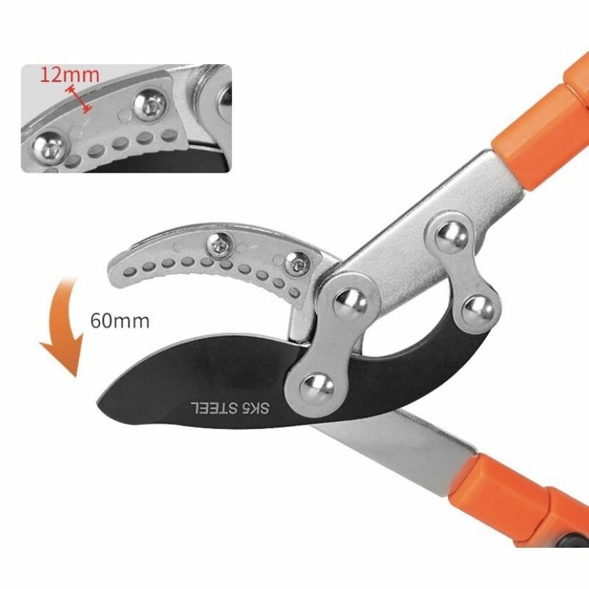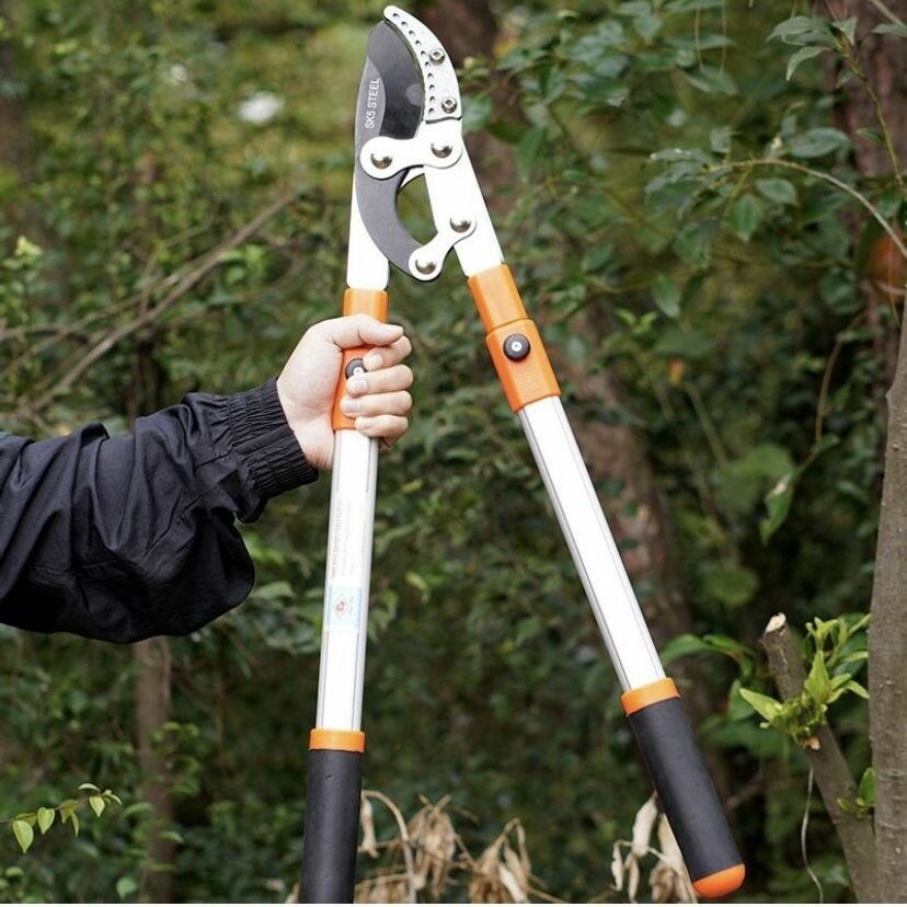 Сучкорез садовый телескопический 680-1020 мм, двухрычажный механизм, срез до 50 мм, с наковаленкой, высокоуглеродистая сталь SK5 интересное: