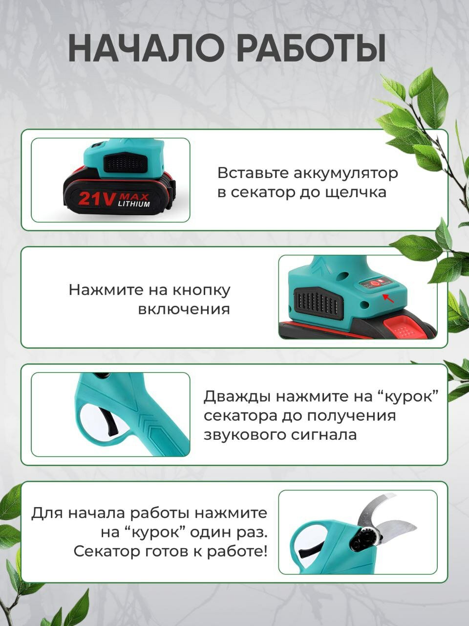 Аккумуляторный садовый секатор с 2 аккумуляторами интересное: