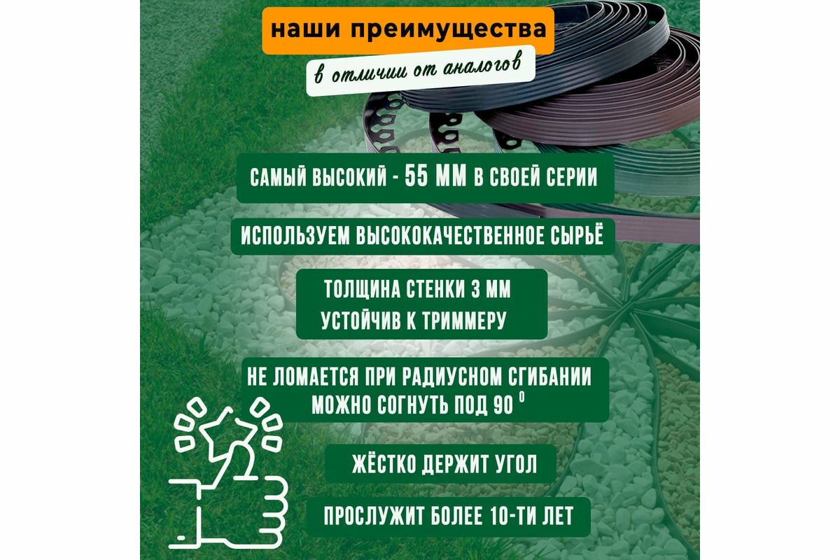 Ниже Вы можете прочитать отзывы на Бордюр садовый пластиковый Манго ГеоПластБорд, высота 55 мм, 10 метров +30 кольев, зелёный, ознакомится с подробными характеристиками, посмотреть интересные обзоры и фотографии на Бордюр садовый пластиковый Манго ГеоПластБорд, высота 55 мм, 10 метров +30 кольев, зелёный.