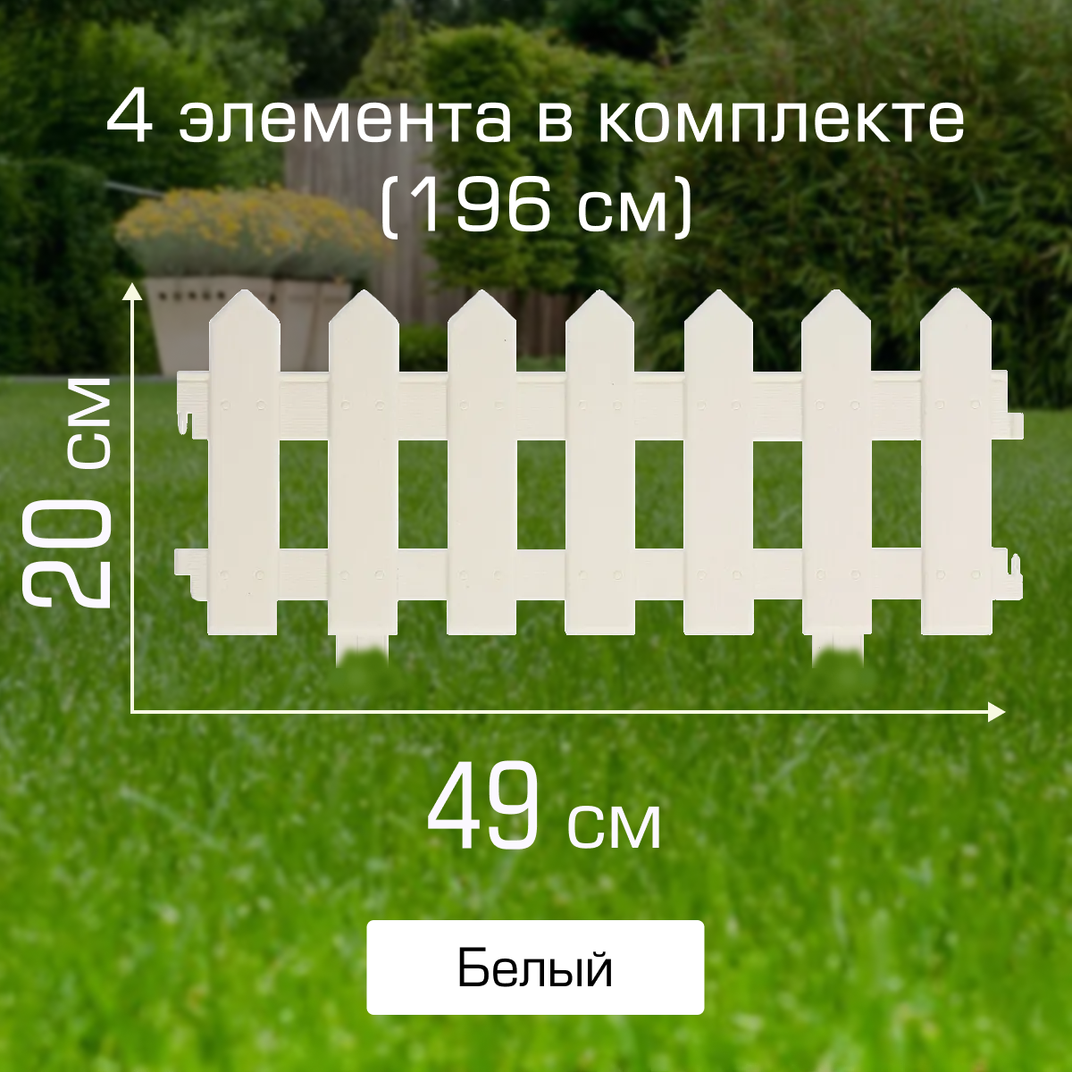 Ограждение садовое палисадник 1,9м 20см 4шт пластик белый