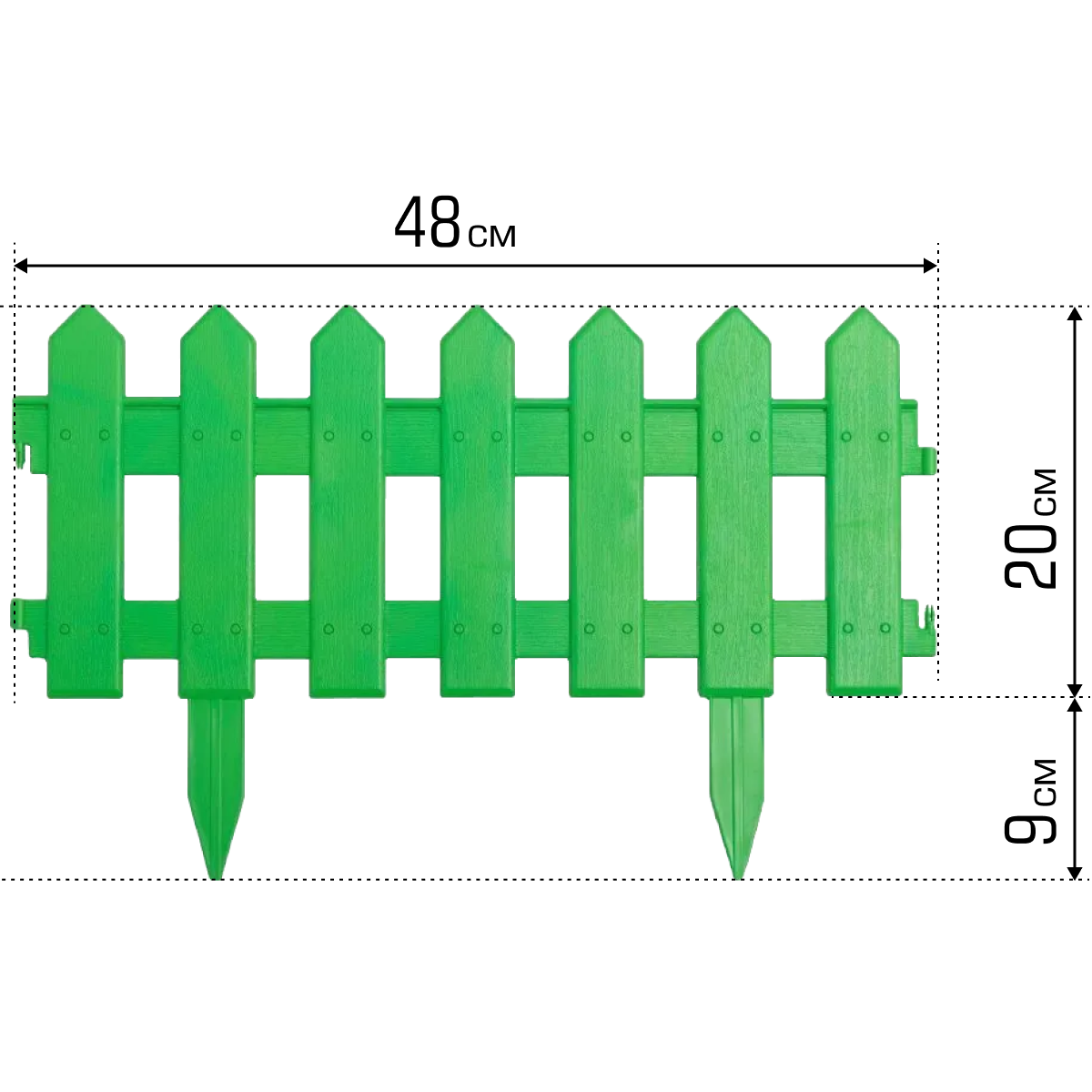 Заборчик садовый "Палисадник-зеленый" Мастер Сад. В сборе 1.9 м, высота 20 см