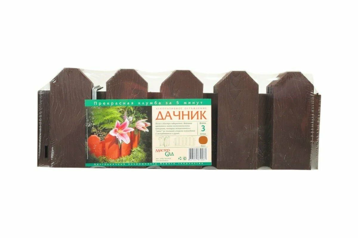 Ограждение садовое Дачник, Мастер Сад, выс. 180мм, дл. 3 метра, коричневый