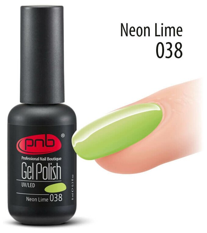 Купить PNB Gel Polish гель-лак для покрытия маникюра ногтей глянцевый UV/LED 038 neon lime 8 мл