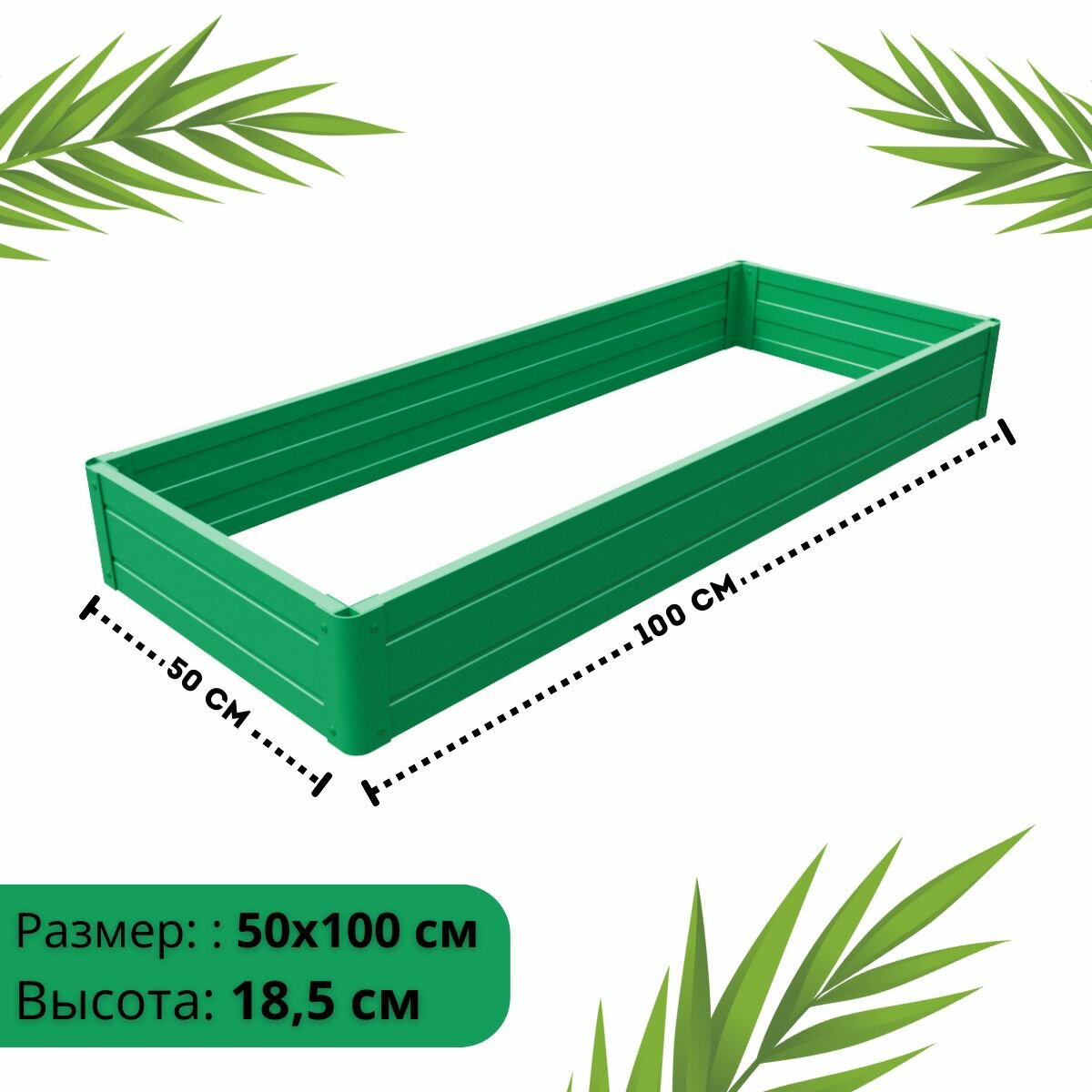 Купить Парники Сибири/Клумба из ПВХ, пластика, "Прямоугольная", 500х1000 мм, высота 185 мм, Цвет: Зеленый