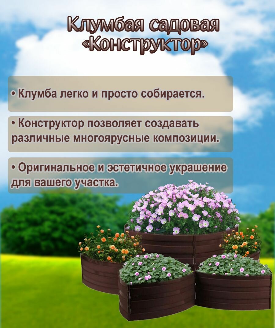 Клумба садовая пластиковая, 15 * 540 см, 18 секций, темно-коричневый, "Конструктор" интересное: