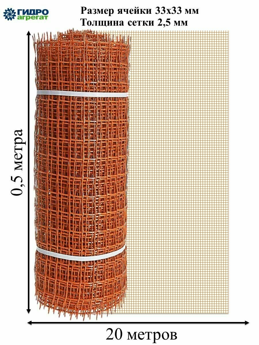 Садовая сетка квадратная 33х33 (0,5 х20) Профи красный .
