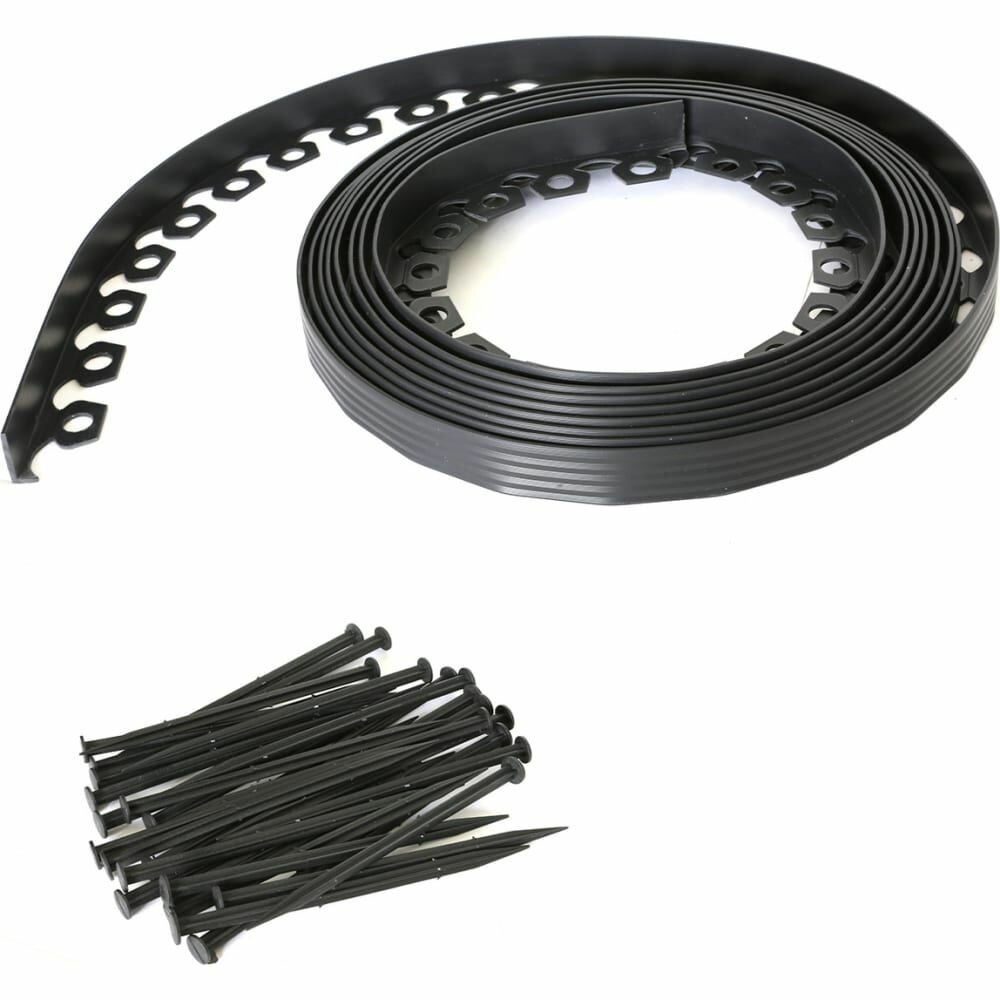 Купить ГеоПластБорд Садовый пластиковый бордюр Манго, высота-38 мм, 10 метров + 30 кольев, чёрный GPBG38.10